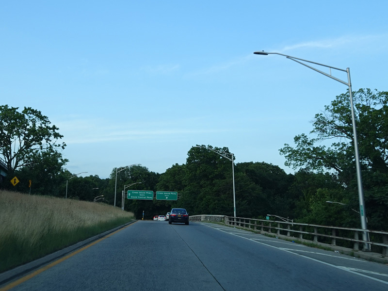 The ramp for exit 23 when travelling east has an exit for Winchester Boulevard, followed by exits for the Cross Island Parkway in both directions. Continue straight ahead to merge back onto the Grand Central Parkway.
