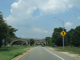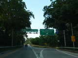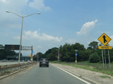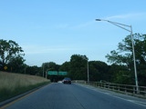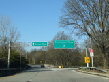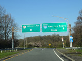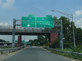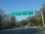 The ramp for exit 21 when travelling west splits. Bear right for the Clearview Expressway (I-295) north. Bear left for Hillside Avenue (NY 25).