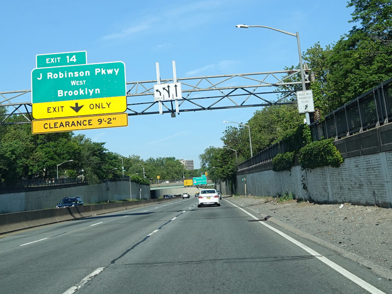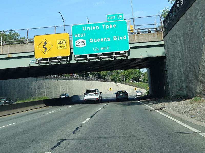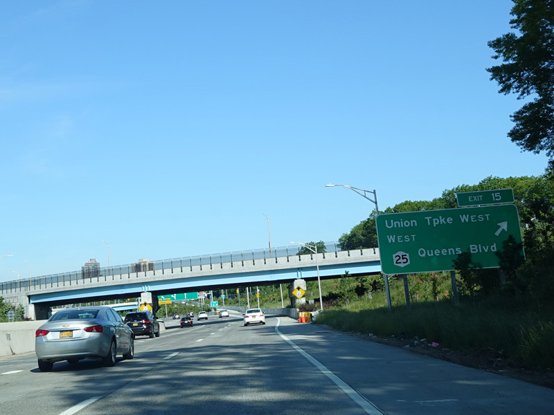 Exit 15 is for Queens Boulevard (NY 25) west and Union Turnpike. Exit 14 is for the Jackie Robinson Parkway, which was formerly known as the Interboro Parkway.