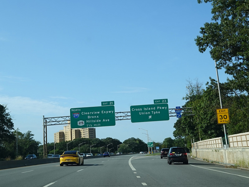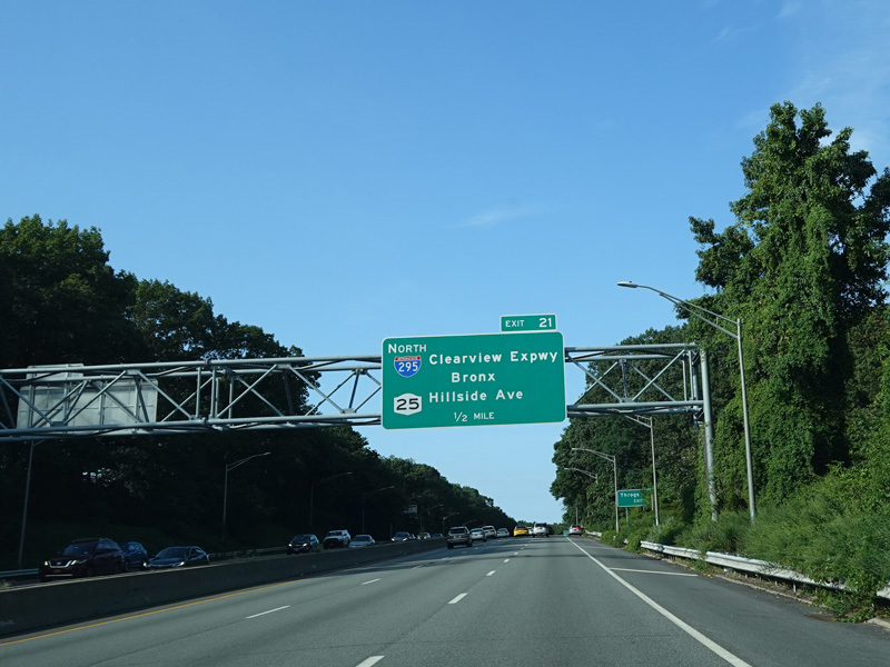 Exit 21 is for the Clearview Expressway (I-295) north and Hillside Avenue (NY 25).