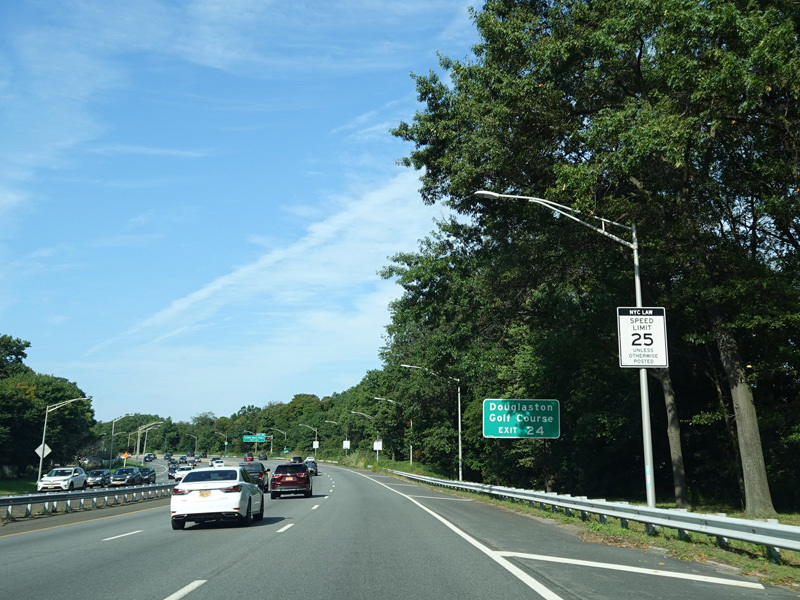 The Northern Parkway becomes the Grand Central Parkway at the Queens-Nassau county line. Exit 24 is for Little Neck Parkway.