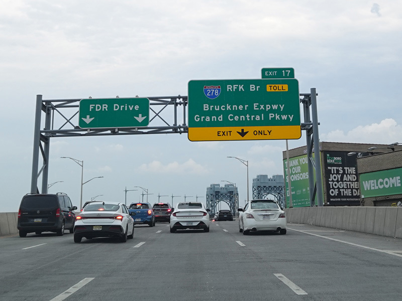 Exit 17 is for the RFK Bridge (I-278). The Harlem River Drive ends at this point, and the FDR Drive begins straight ahead.