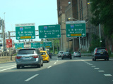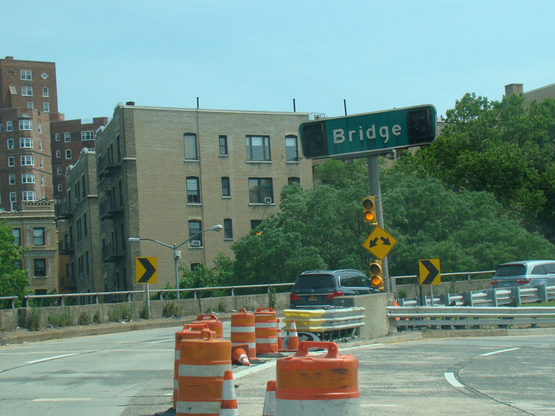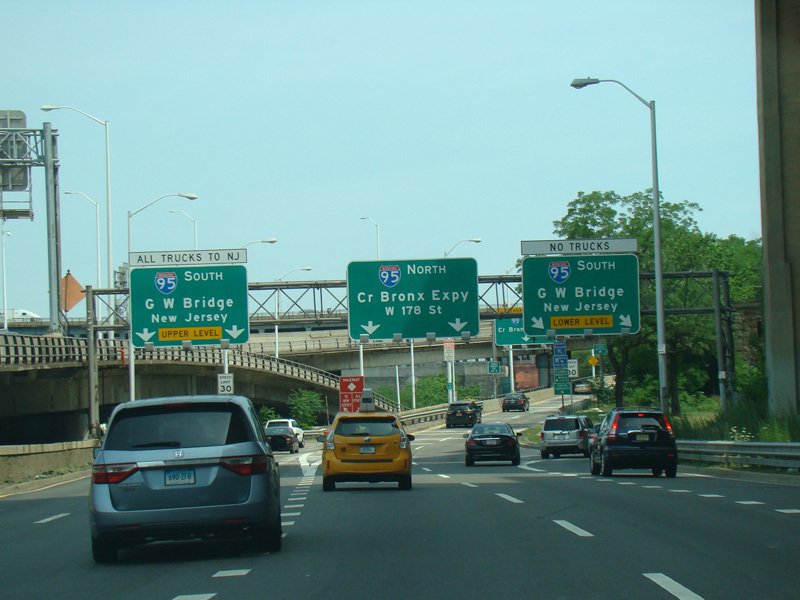 The ramp for exit 14 from the northbound Henry Hudson Parkway splits. Use the center lanes for the Cross Bronx Expressway (I-95/US 1/US 9) north and West 178 Street. Use the outer lanes for the George Washington Bridge (I-95/US 1/US 9) south. Use the left lanes for the upper level of the bridge or the right lanes for the lower level.