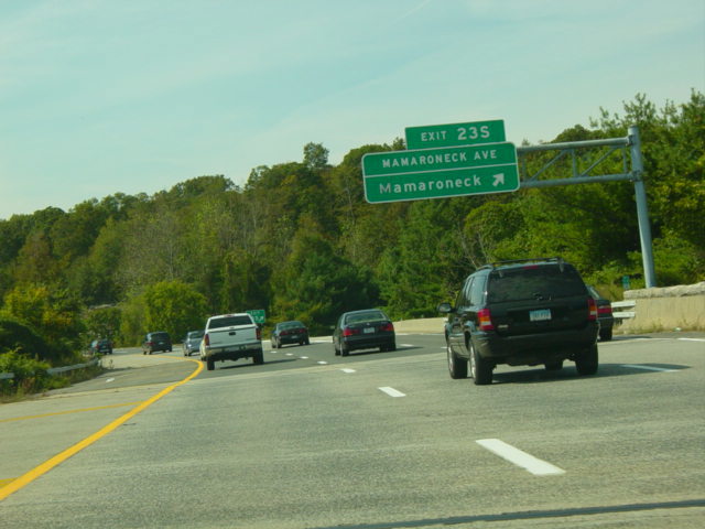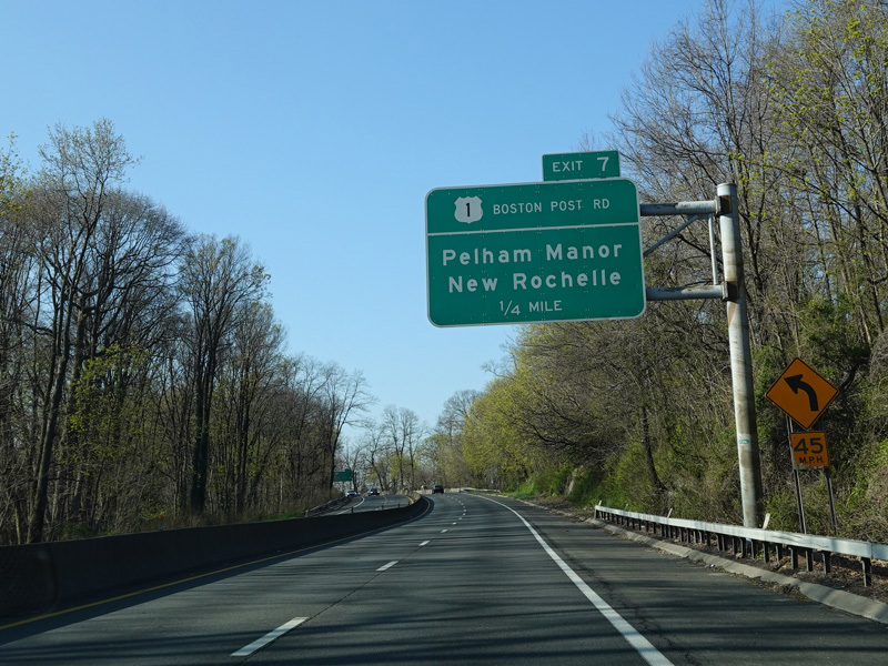 These pictures show the Hutchinson Parkway southbound in Westchester as it appeared before the exits were renumbered to use a milepost system.