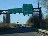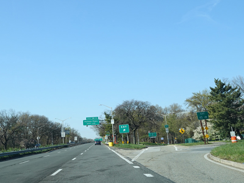 These pictures show the Hutchinson Parkway southbound in the Bronx as it appeared before the exits were renumbered to use a milepost system.