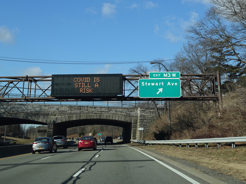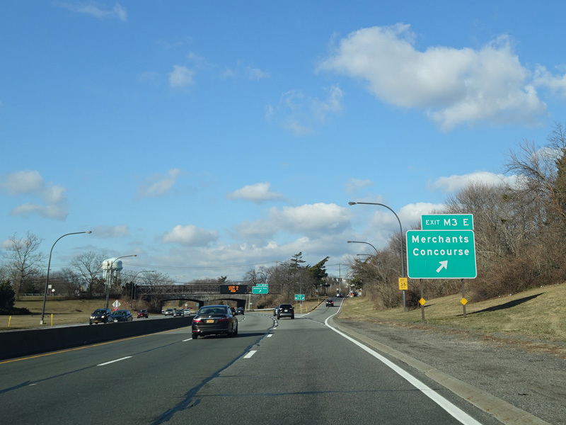 Exit M3E is for Merchants Concourse. Exit M3W is for Stewart Avenue (CR 177).