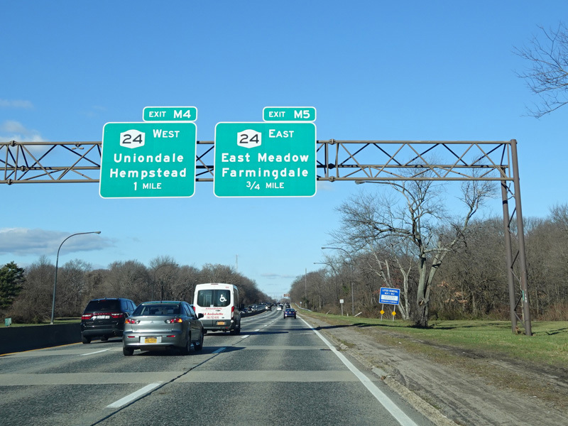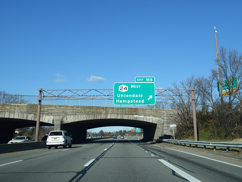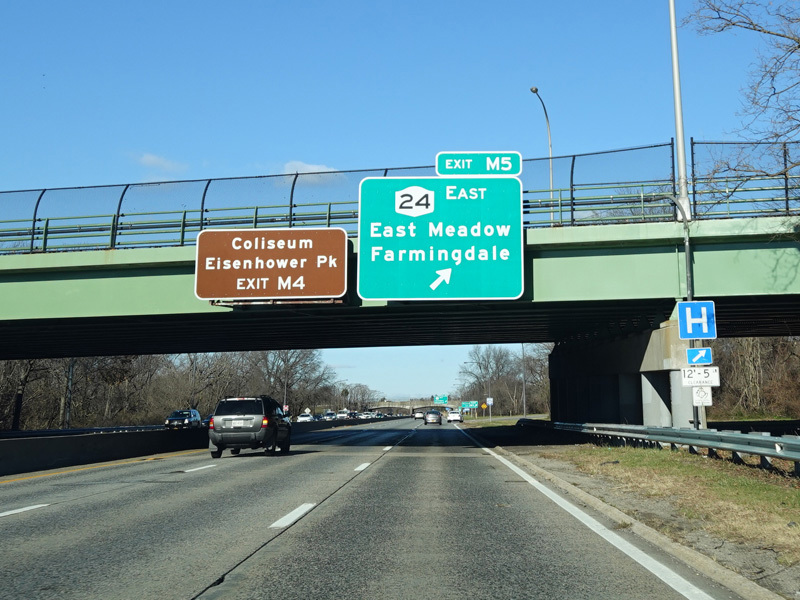 Exit M4 is for Hempstead Turnpike (NY 24) west. It also provides access to the Nassau Coliseum and Eisenhower Park.