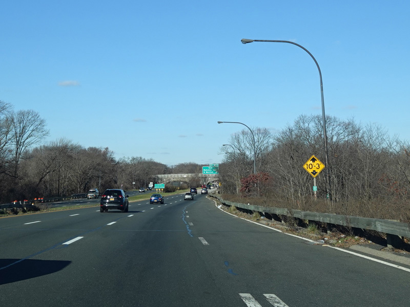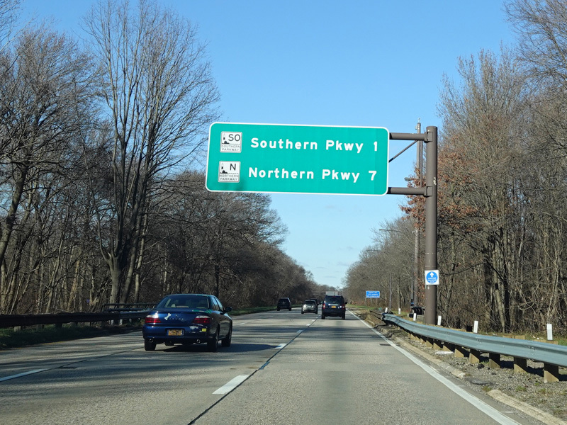 The Meadowbrook Parkway ends at the Northern Parkway. Use the right lane to go east or the left two lanes to go west.
