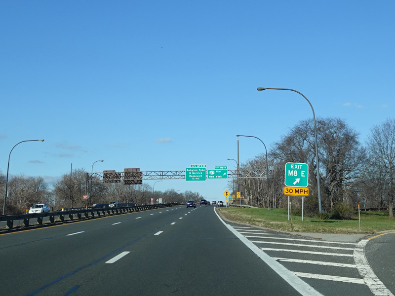 Exits M8E-W are for Sunrise Highway (NY 27).