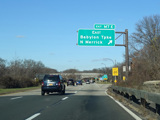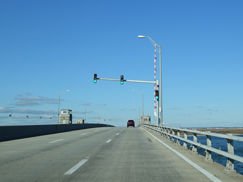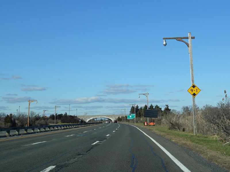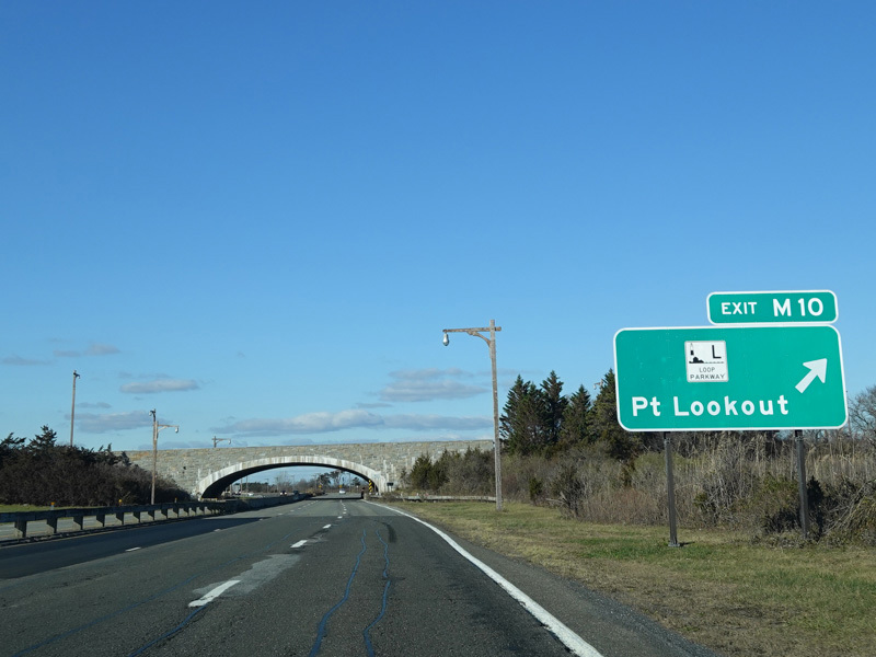 The Ocean Parkway curves to the north and becomes the Meadowbrook Parkway immediately after its interchange with the Bay Parkway. It leaves Jones Beach on a drawbridge.