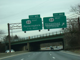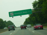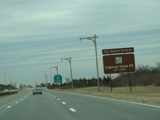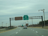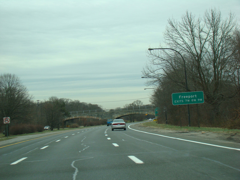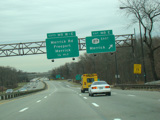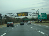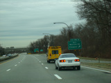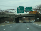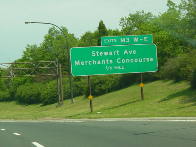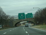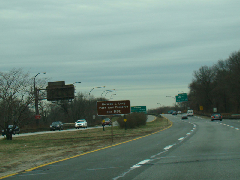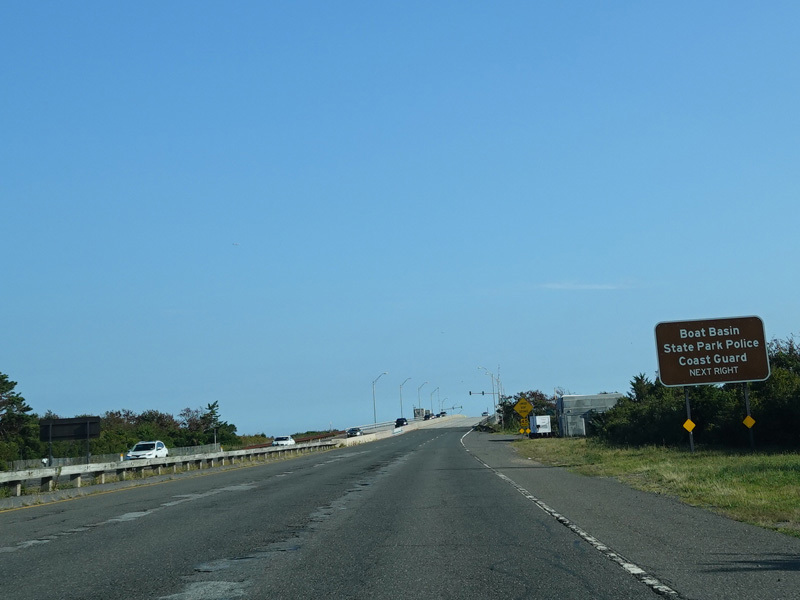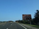 These signs used to mark the interchange with the Bay Parkway. They have been replaced with ones that make reference to the Energy and Nature Center instead of the West End Beaches.