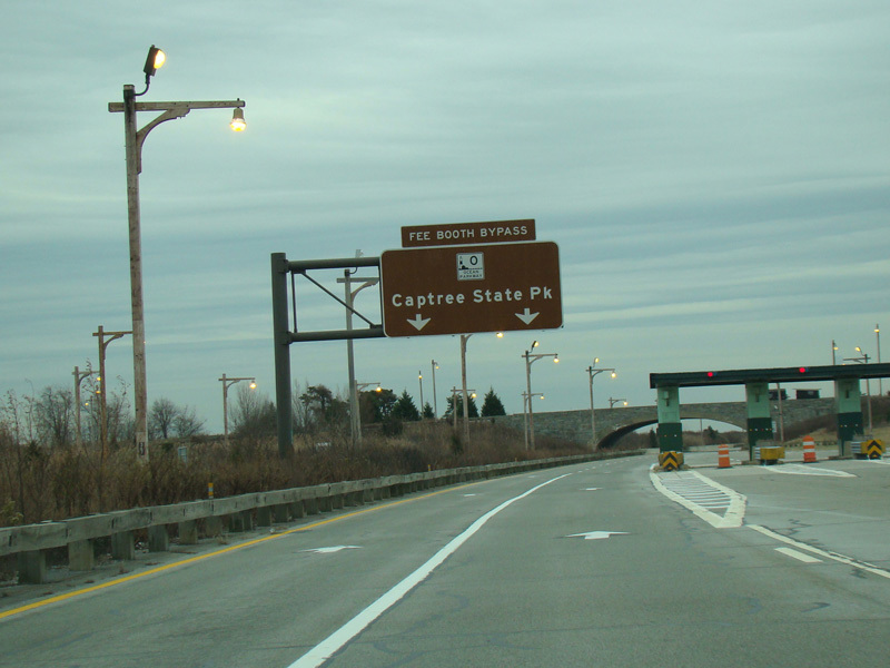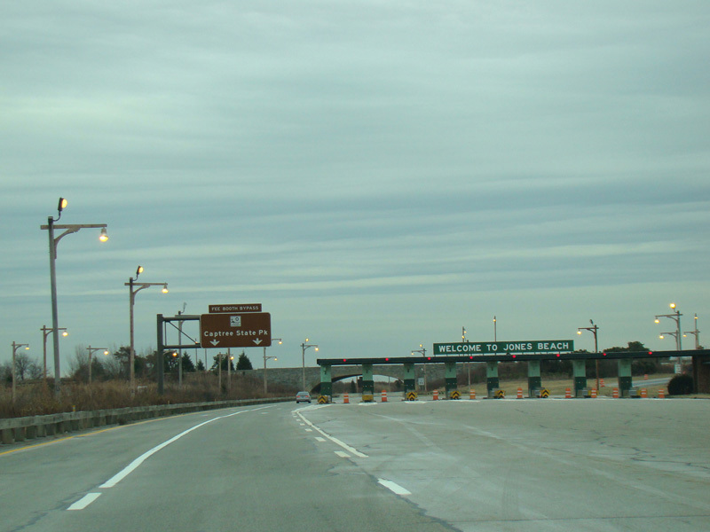 Prior to 2018, the parking fee for Jones Beach State Park was collected at booths along the Meadowbrook Parkway just south of the Loop Parkway. Fee collection has since been moved to the entrances to the parking fields.