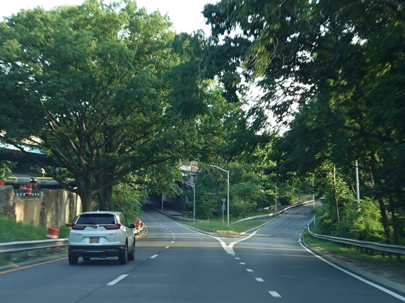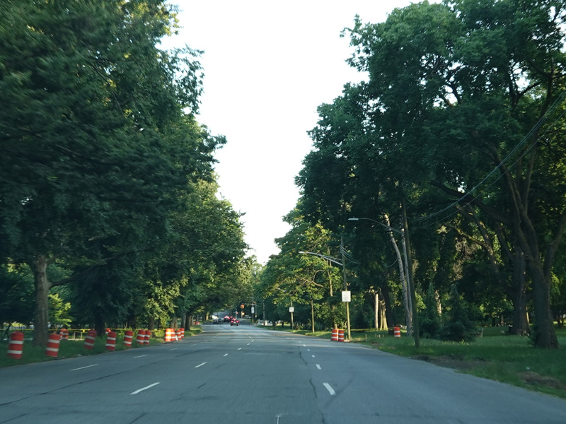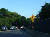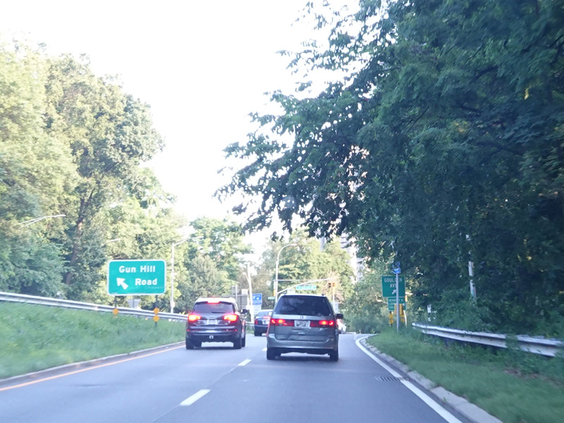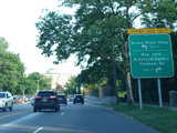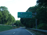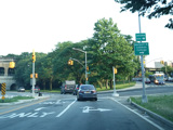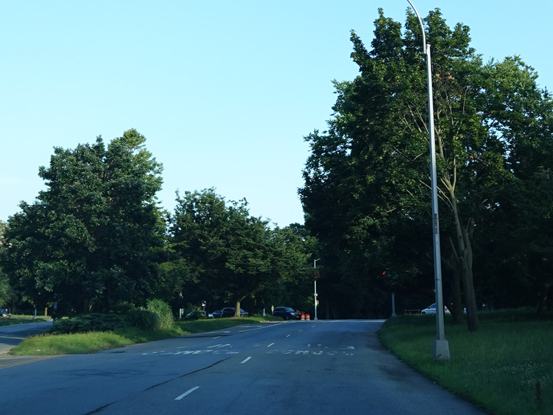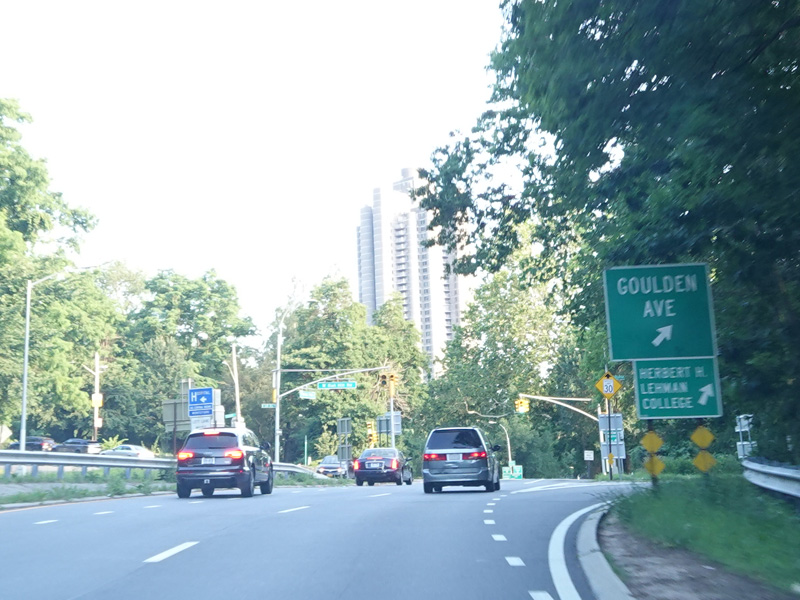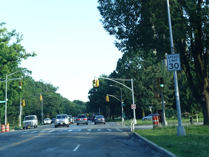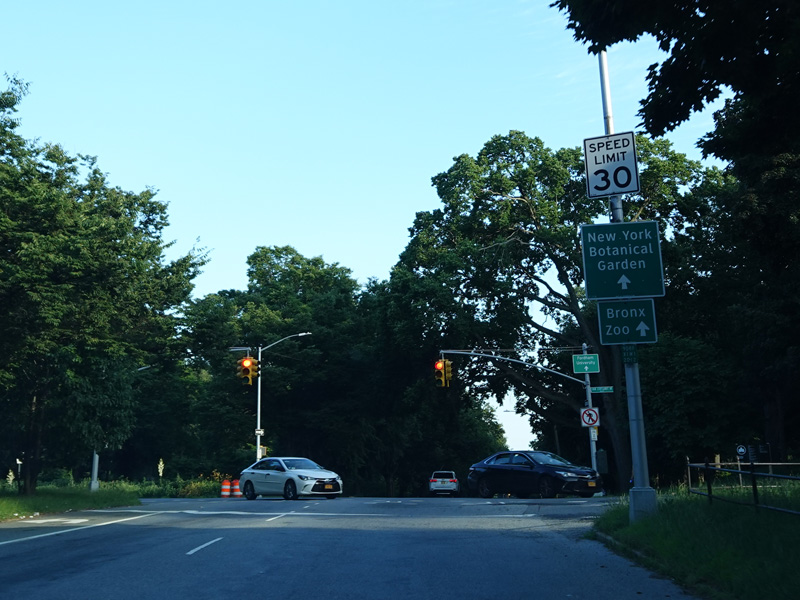 There is an interchange with the Bronx Parkway. Immediately thereafter, the Mosholu Parkway ends at a traffic light at Bronx Park East. Allerton Avenue is straight ahead.