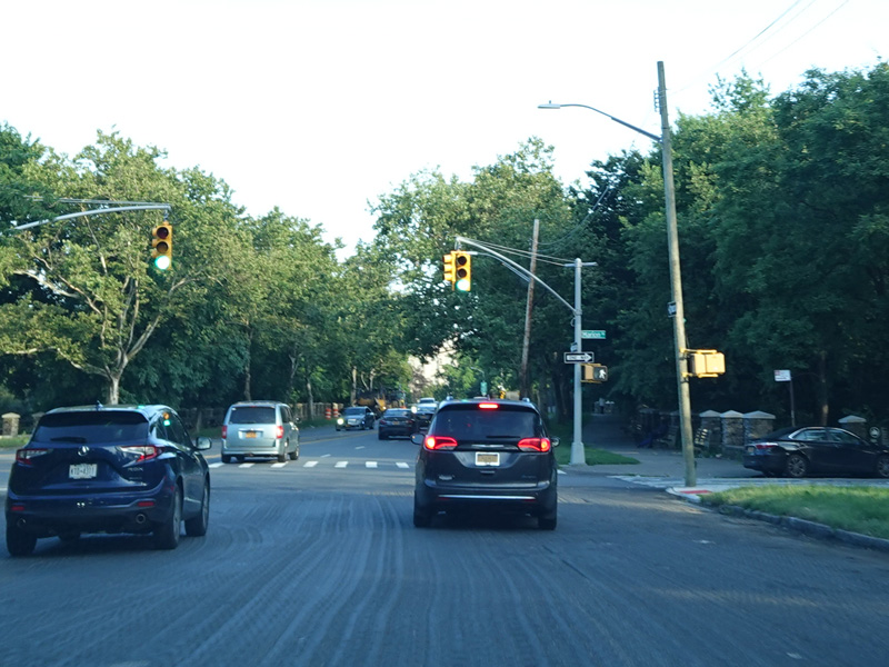 There is a traffic light at Southern Boulevard, which begins on the right. Turn left to stay on the Mosholu Parkway.