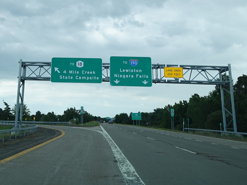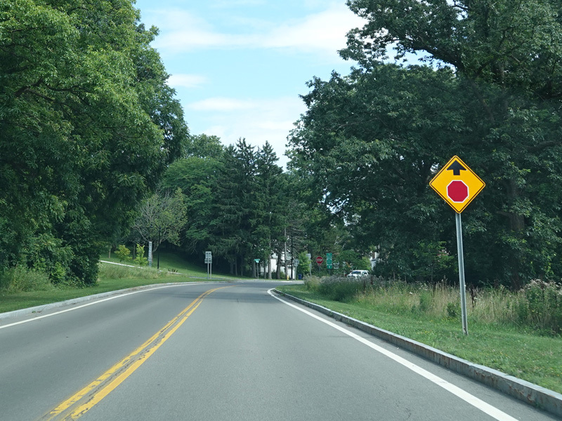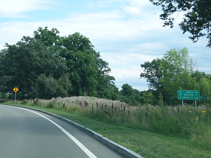 The northern section of the Niagara Scenic Parkway ends here at a stop sign. Turn left onto Findlay Drive for access to Lewiston Road (NY 104). Continue straight ahead on Whirlpool Street for access to the southern section of the parkway.