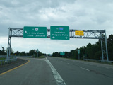 The spur merges in from the right. There is a turnaround on the left so that vehicles coming from the spur can access the northbound side.