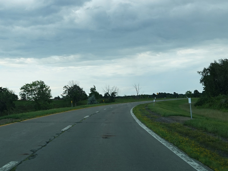 The spur begins at Fort Niagara State Park. There is a single exit for NY 18F. After a short distance, the spur merges into the parkway heading south. The is a turnaround straight ahead providing access to the northbound side.