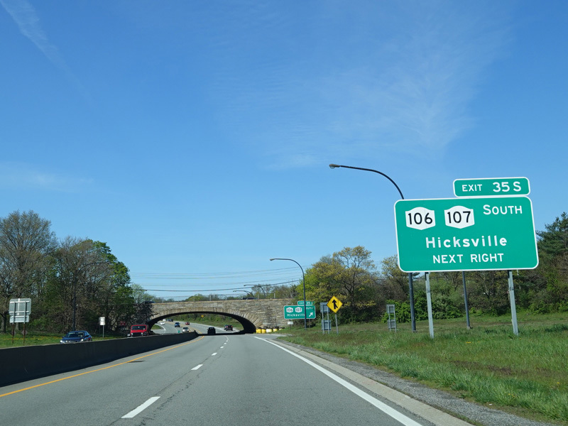 Exits 35N-S are for Broadway (NY 106/NY 107).