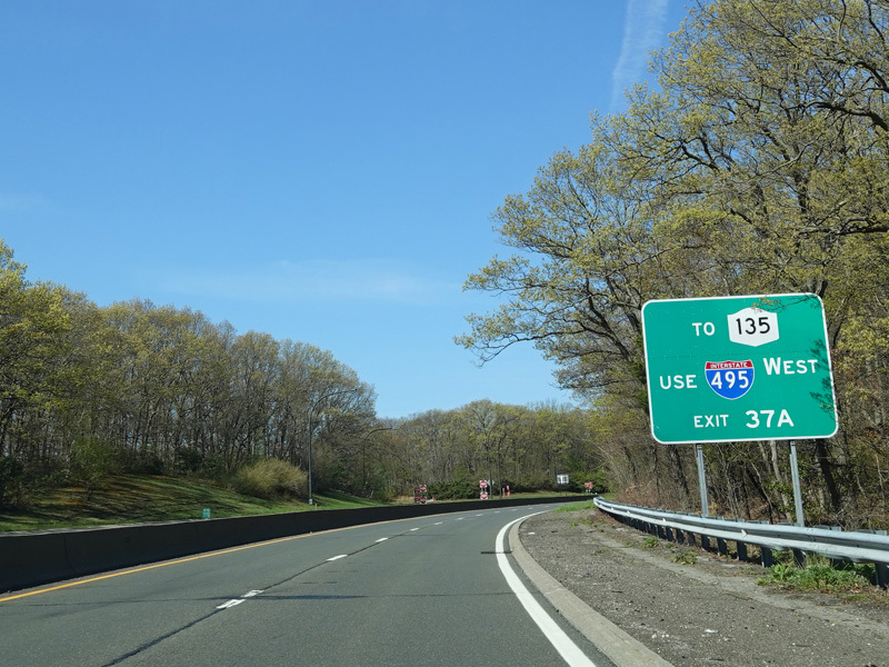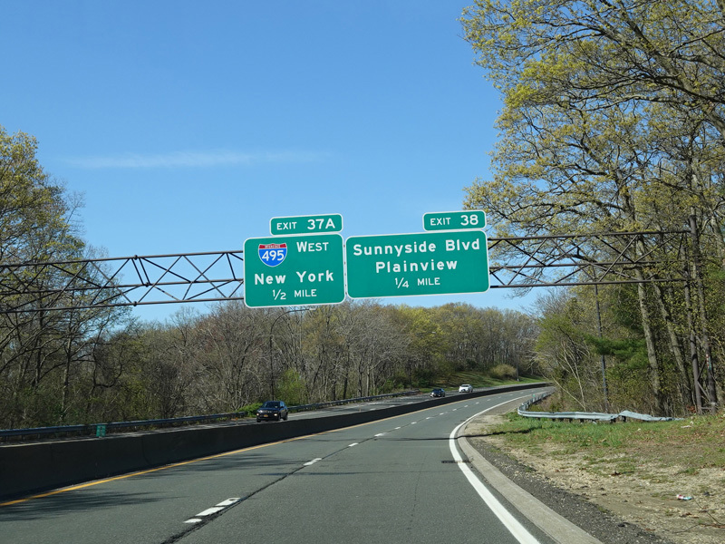 Exit 37A is a crossover to the Long Island Expressway (I-495) west. To access the Seaford-Oyster Bay Expressway (NY 135), use exit 37A because there are no exits for it when travelling west on the Northern Parkway.