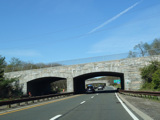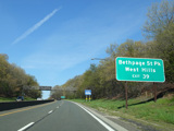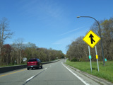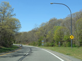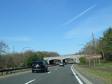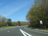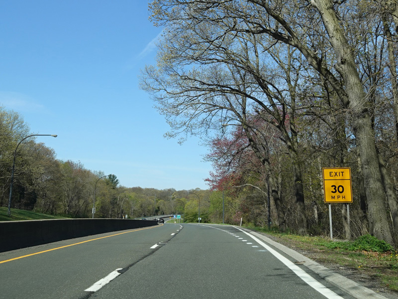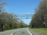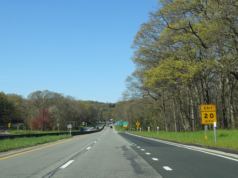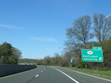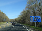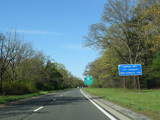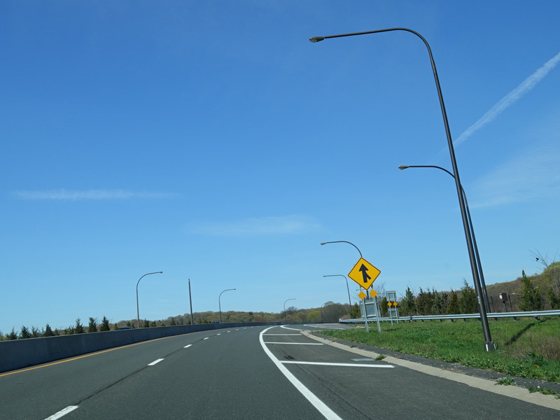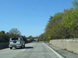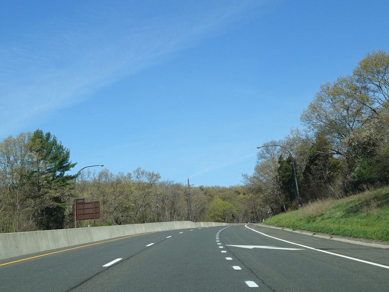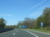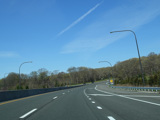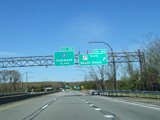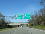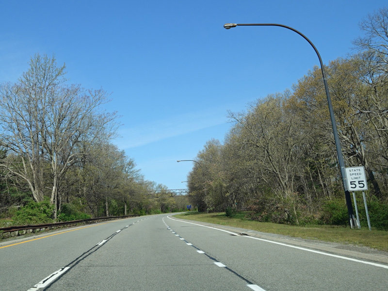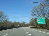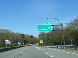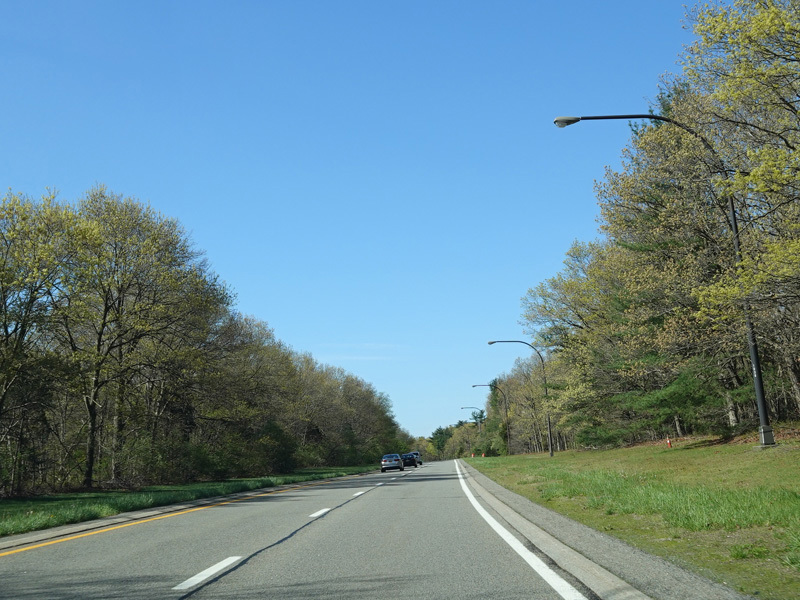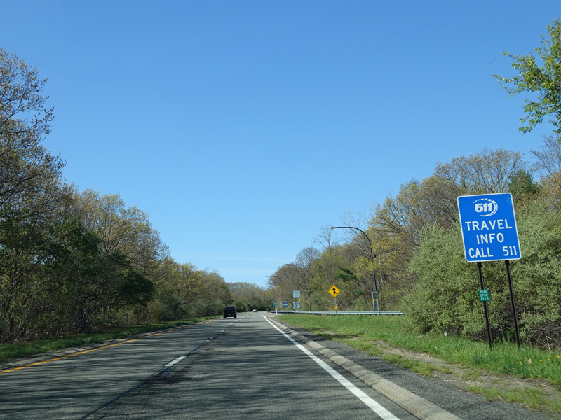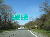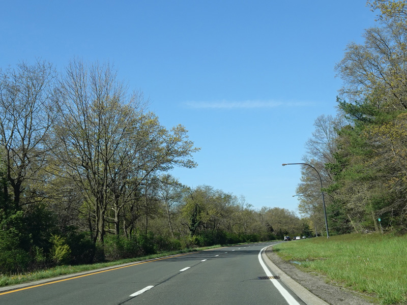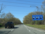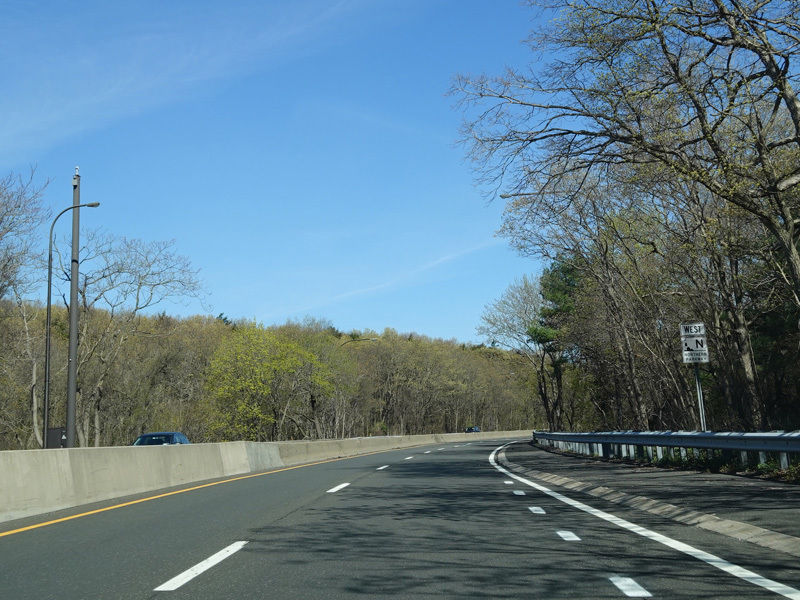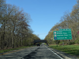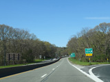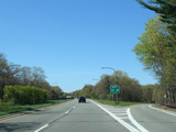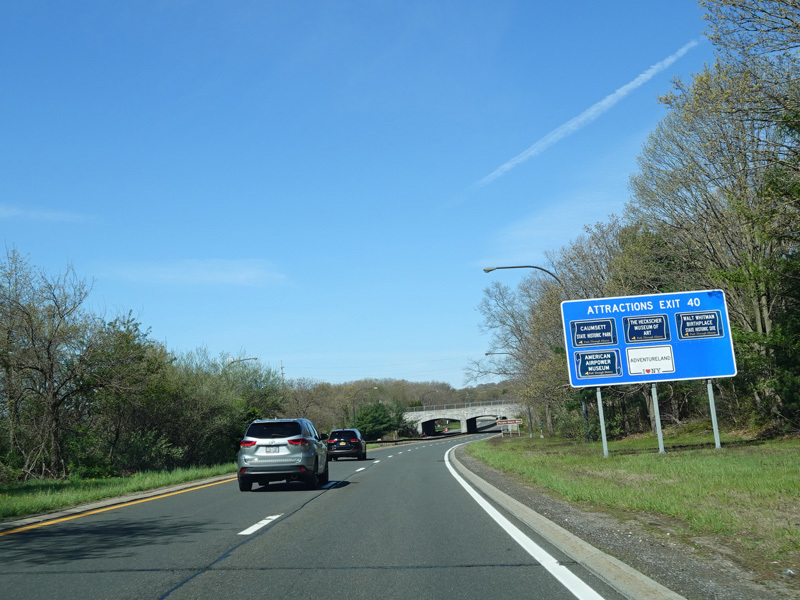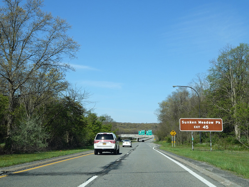 The Northern Parkway begins at Veterans Highway (NY 347/NY 454) in Hauppauge. Exit 45 is for the Sunken Meadow Parkway north. Exit 44 is for the Sagtikos Parkway south.