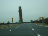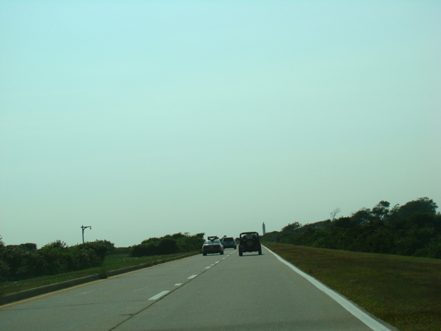 These pictures show the Ocean Parkway approaching the obelisk while work was in progress to rehabilitate it. The top, which is made of copper, appeared green at the time due to oxidation, similar to the Statue of Liberty. It has been replaced and, at least for now, has its original copper color again.