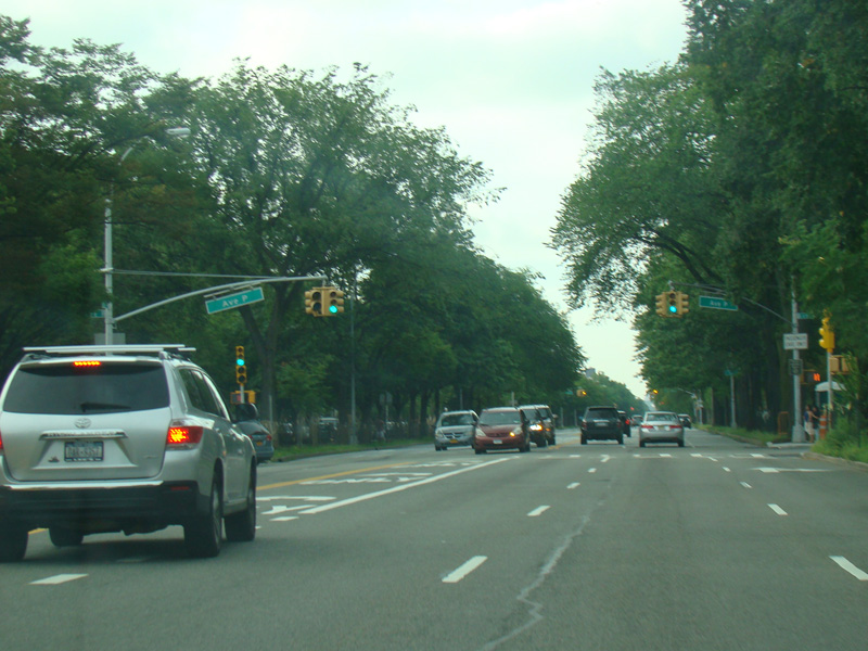 Ocean Parkway ends here at NY 27. Continue straight ahead onto the Prospect Expressway to go west. Turn right onto Church Avenue to go east.