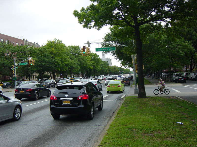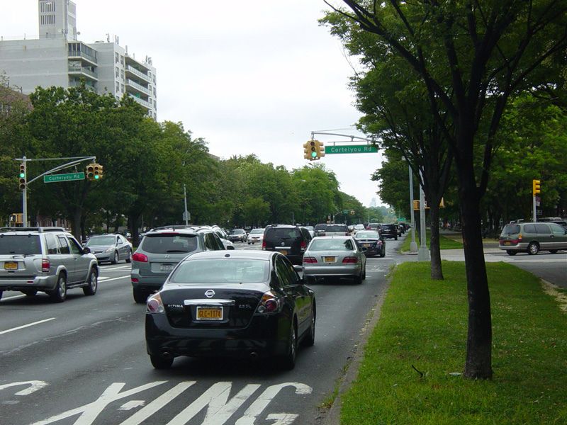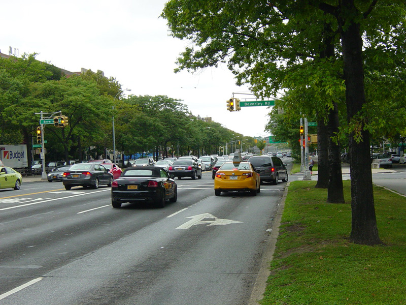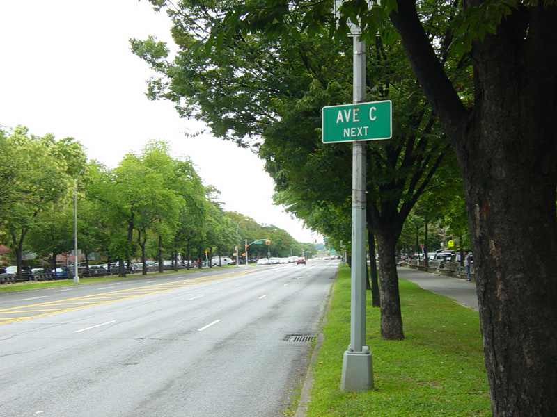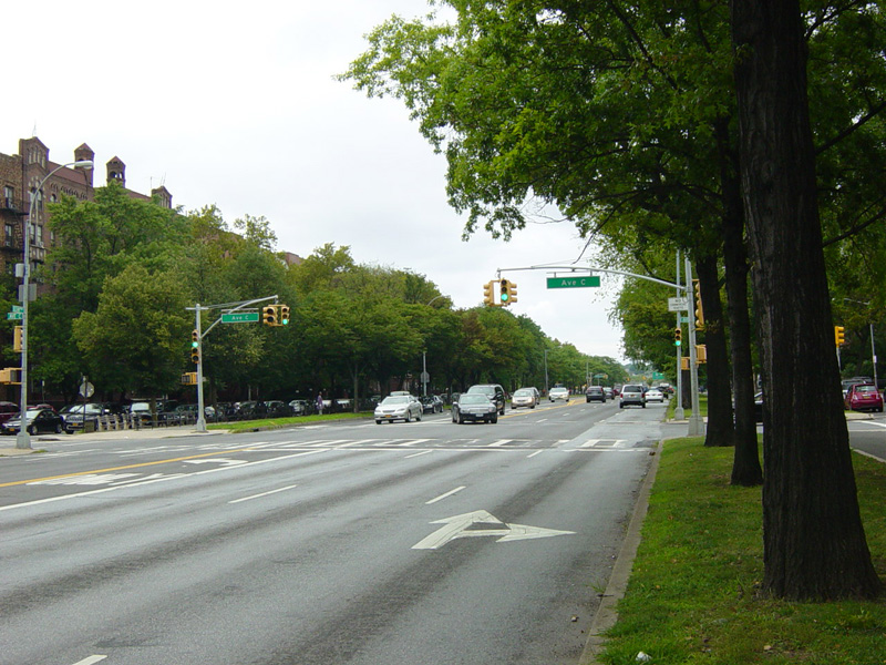 There are traffic lights with oversized street name signs at Foster Avenue, Parkville Avenue, Newkirk Avenue, 18 Avenue, Ditmas Avenue, Cortelyou Road, Avenue C, and Beverly Road.