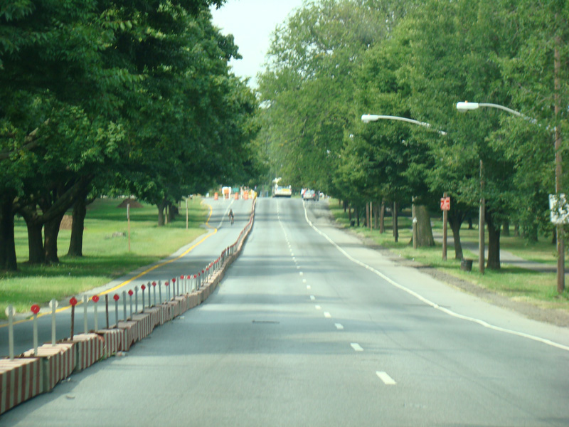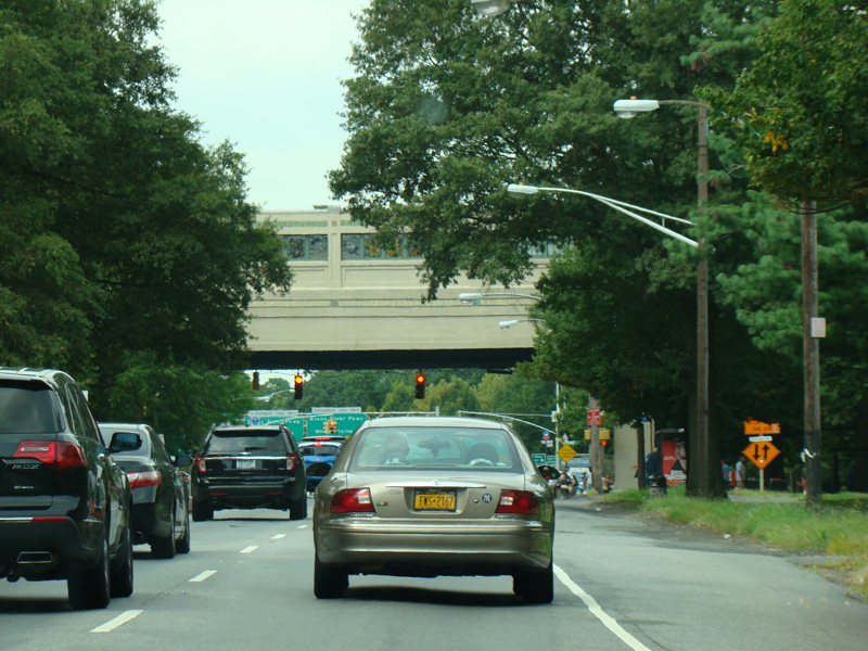 Shore Road becomes Pelham Parkway at an interchange with the Bruckner Expressway (I-95).