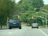 Pelham Parkway intersects White Plains Road at a traffic light. There are elevated subway tracks above White Plains Road. At the second traffic light, Pelham Parkway ends at US 1. Turn right onto Boston Road to go north or continue straight onto East Fordham Road to go south.