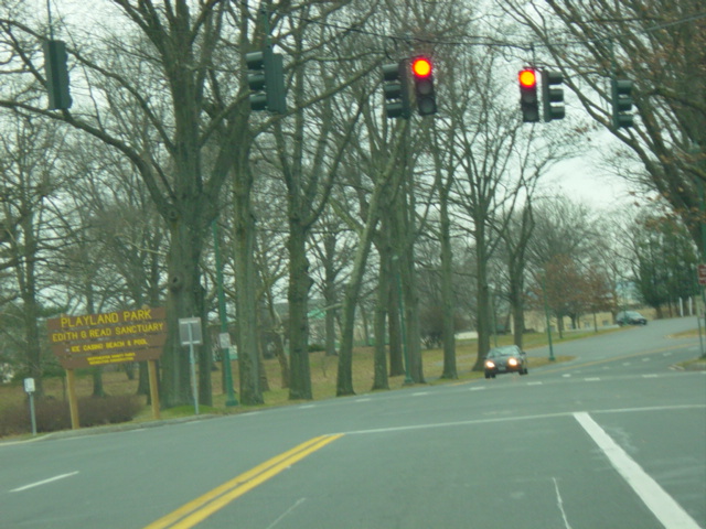 Playland Parkway begins at the New England Thruway (I-95) in Rye. Immediately, there is an exit for Rye and Harrison.