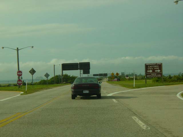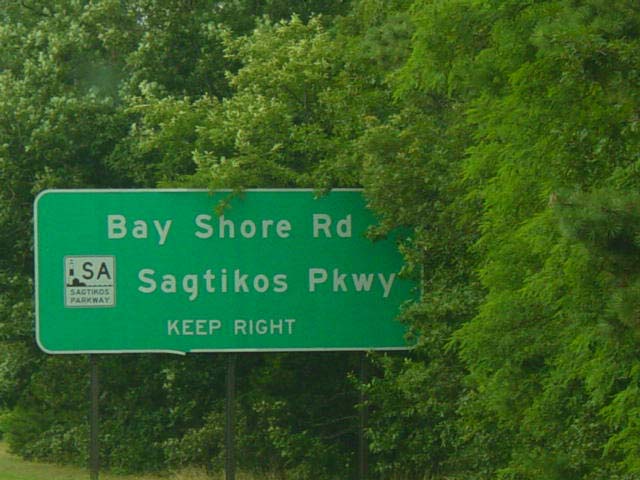 This sign used to mark the exit for Captree State Park from the northbound Robert Moses Causeway. It has been replaced.