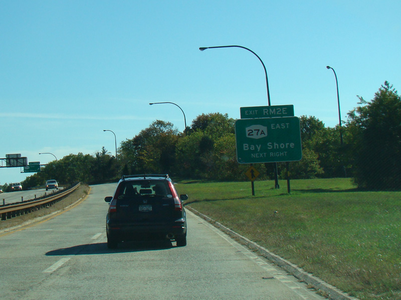 Exits RM2W-E, the last numbered exits, are for Montauk Highway (NY 27A).