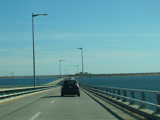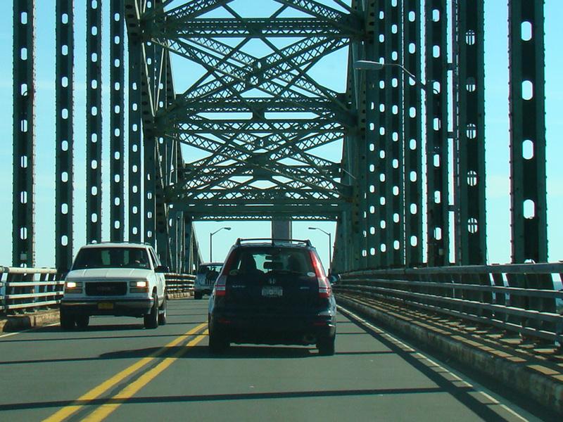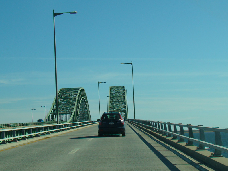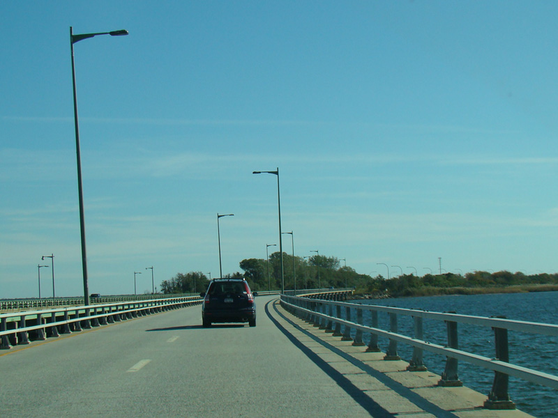 A long bridge carries the Robert Moses Causeway across Great South Bay to Captree Island. It is one of the longest bridges in the New York metropolitan area.