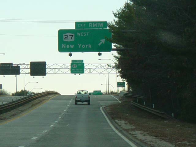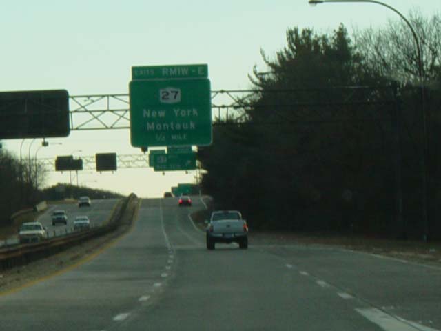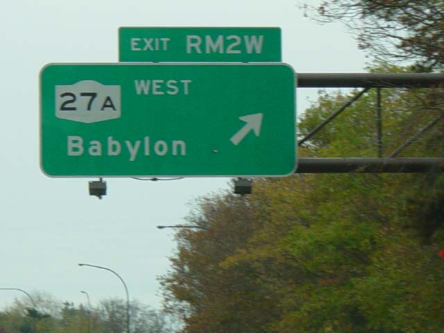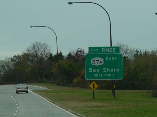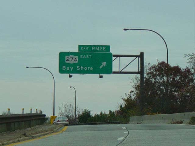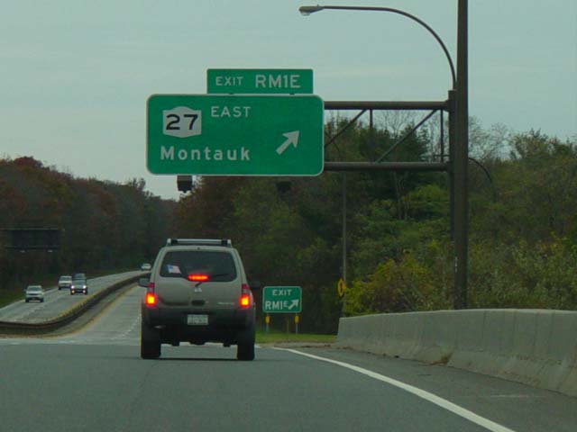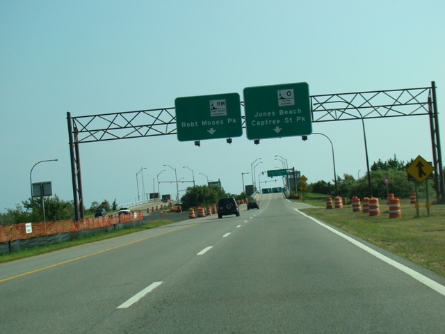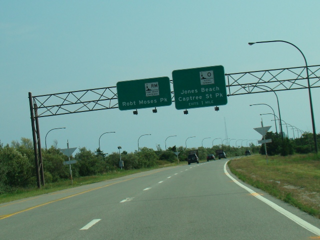 These signs used to mark the exits for Captree Island and the Ocean Parkway. They have been replaced. The new signs are brown instead of green because they are located inside a state park.