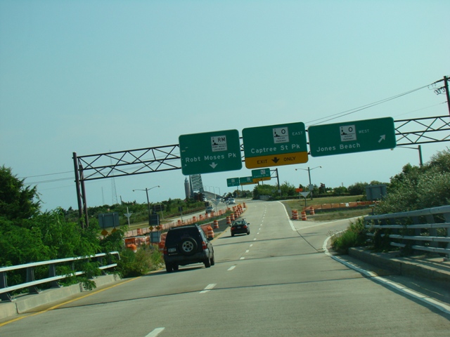 This sign used to mark the exit for Captree Island on the southbound Robert Moses Causeway. It has been removed.