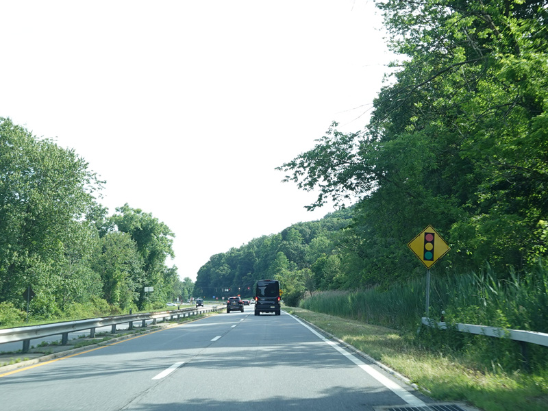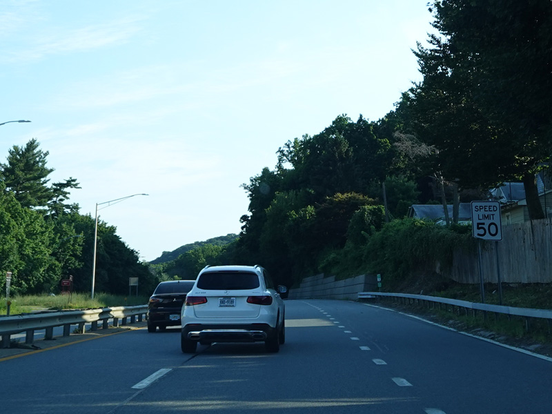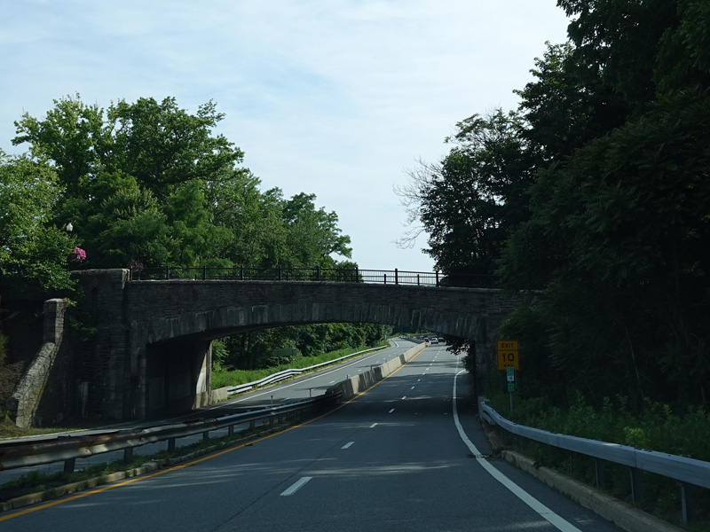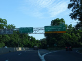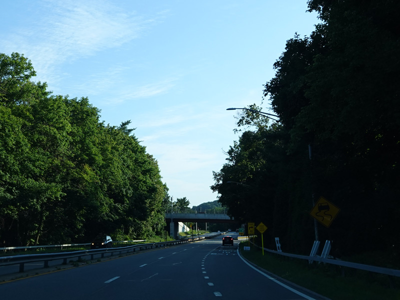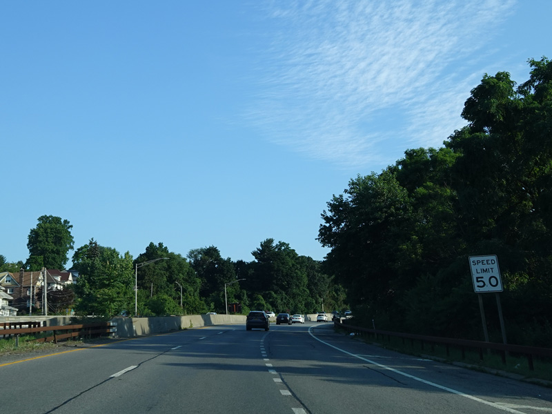 The Saw Mill Parkway ends at the Bronx-Westchester county line. The Henry Hudson Parkway is straight ahead.