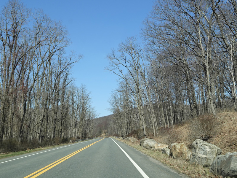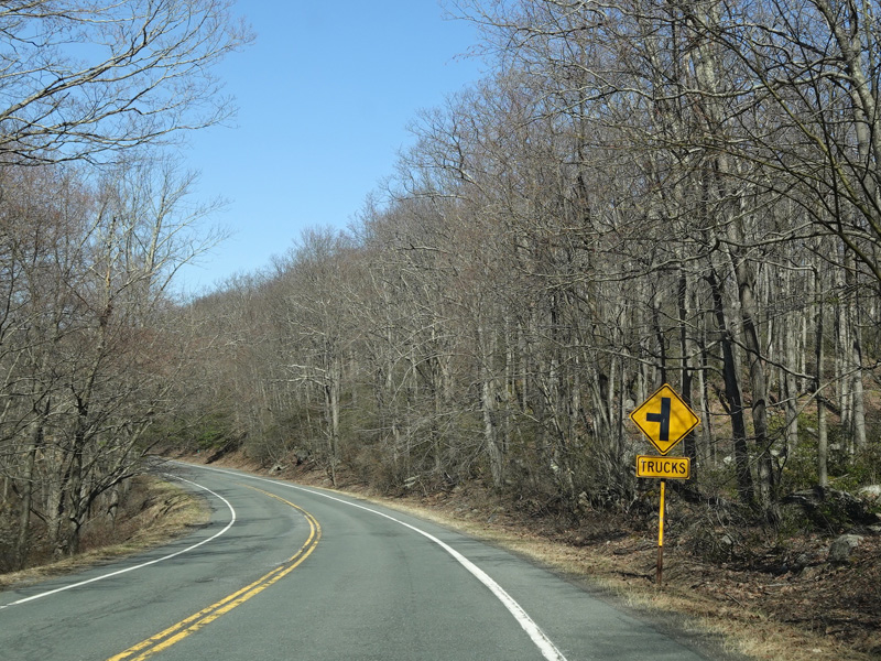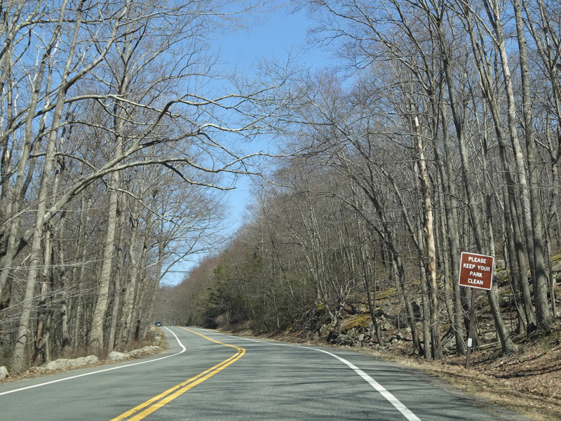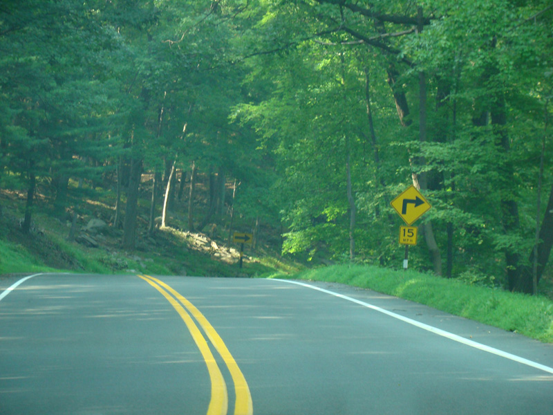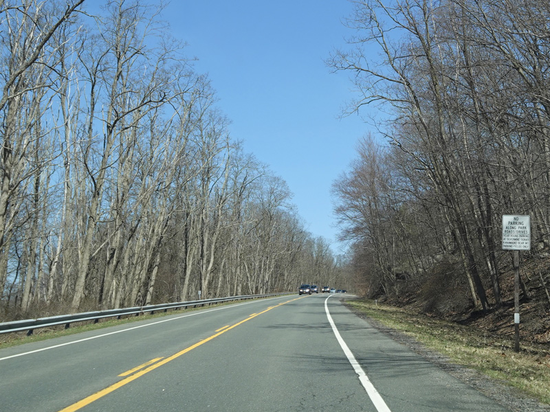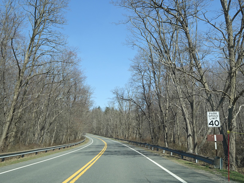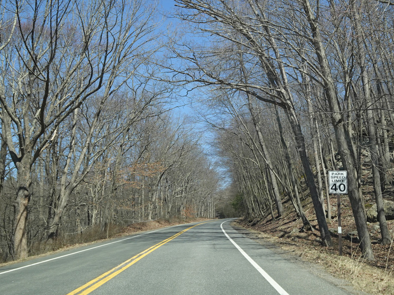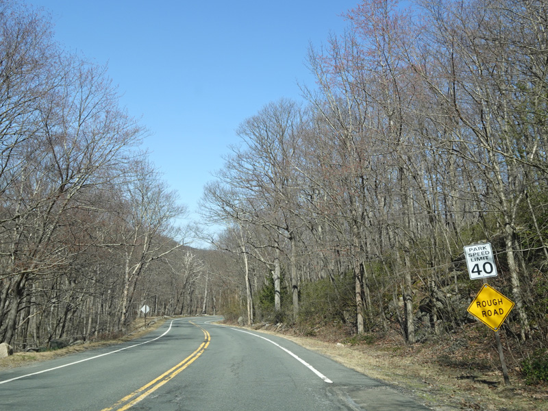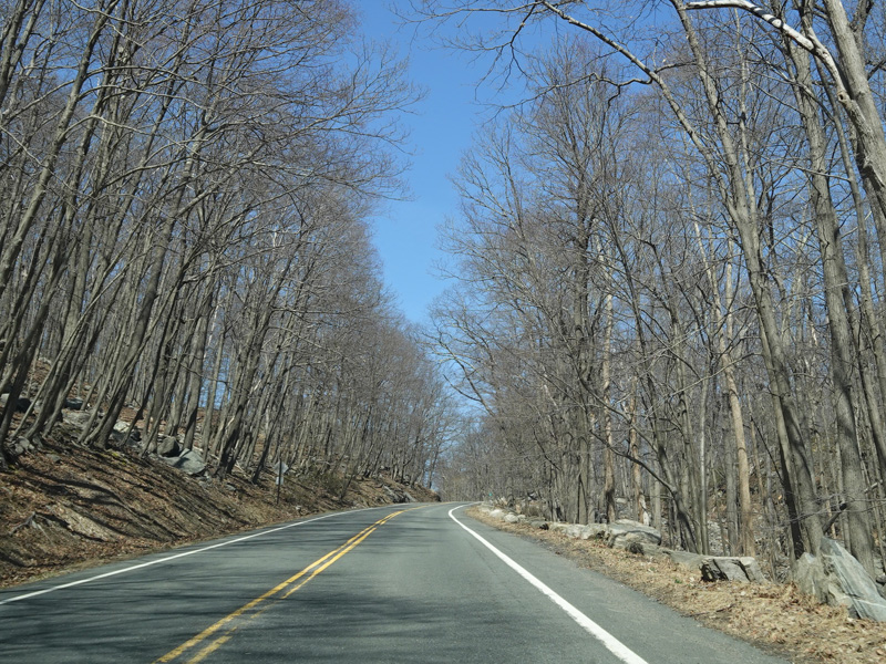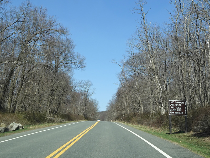 Seven Lakes Drive runs east through Bear Mountain State Park, following a curvy path.