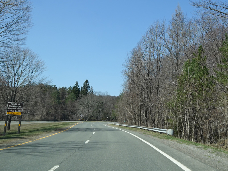 Seven Lakes Drive begins at Orange Turnpike (NY 17) in Sloatsburg. The first section is shown in state documents as Seven Lakes Road and has a different reference route number, but it is signed as part of Seven Lakes Drive.