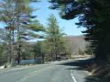Seven Lakes Drive continues to the northeast. Lake Nawahunta is on the left. Silver Mine Lake is on the right.