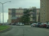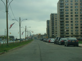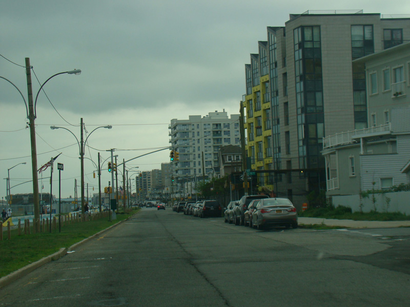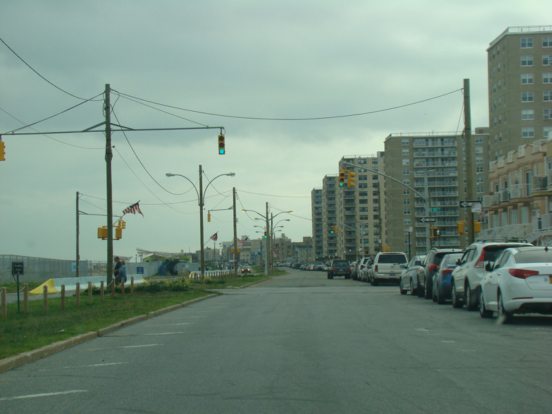 The Shore Front Parkway runs west through the Rockaways as a two-lane divided road.