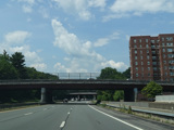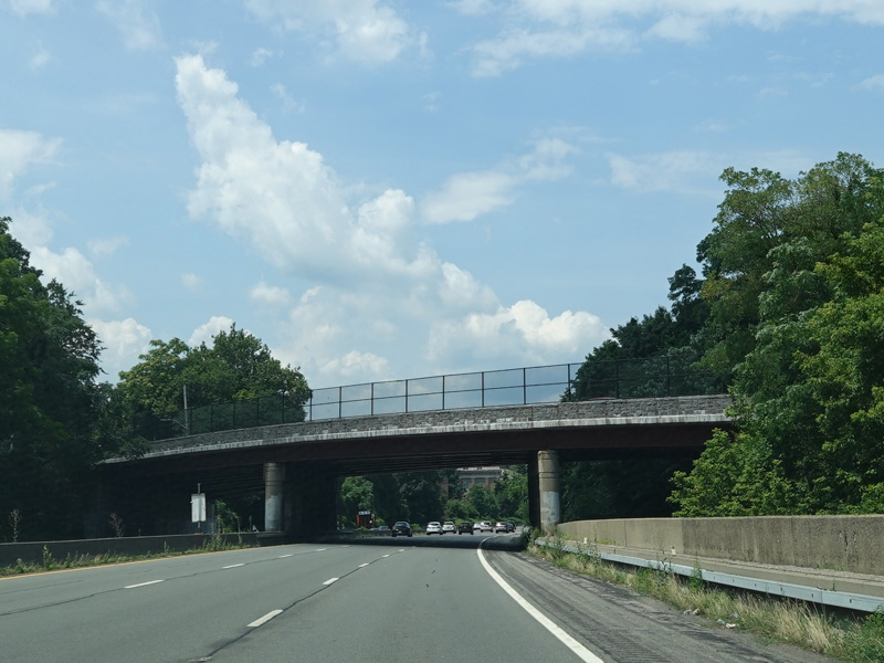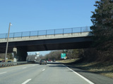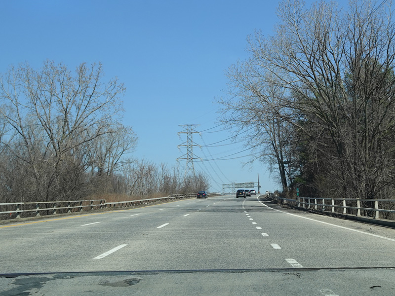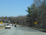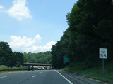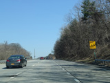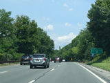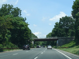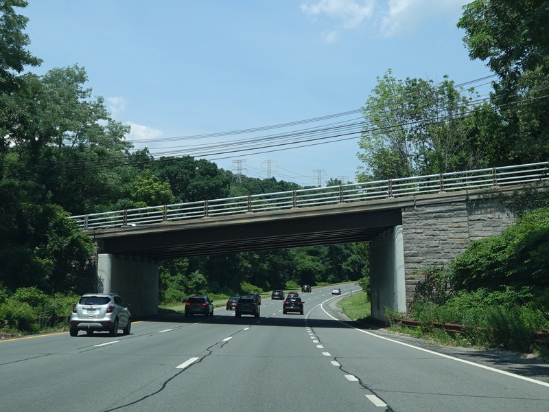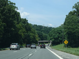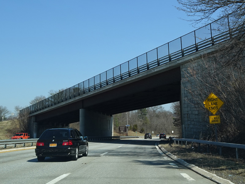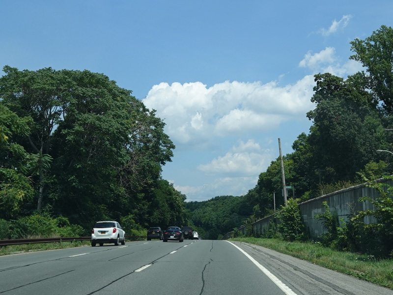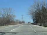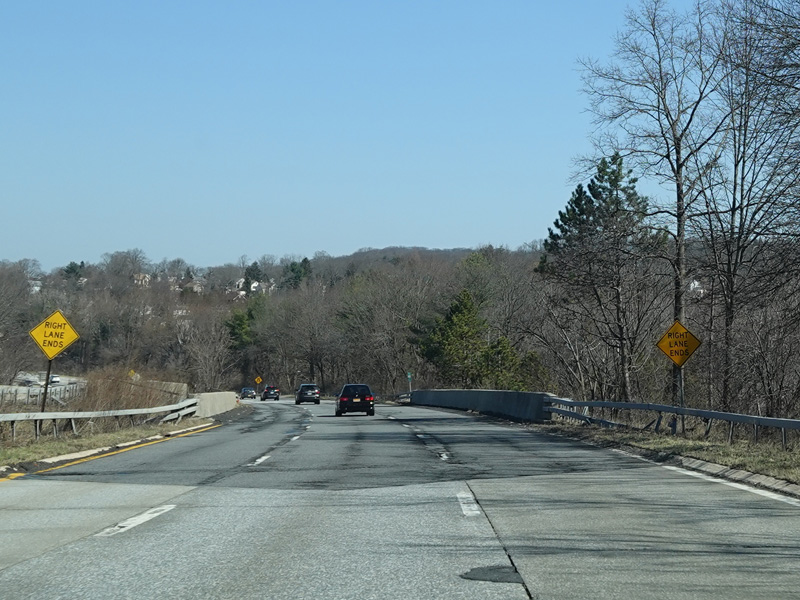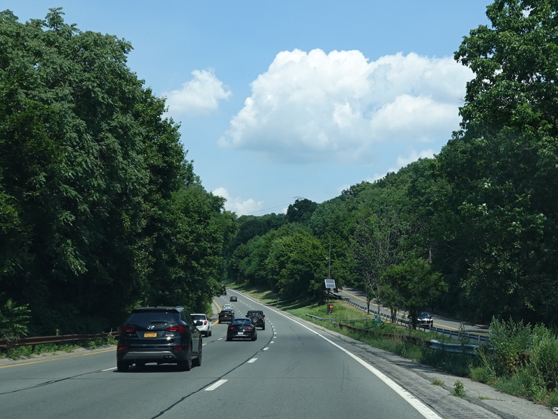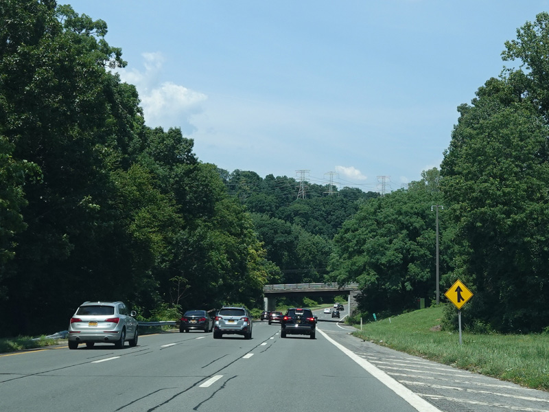 The northbound and southbound lanes split and run on opposite sides of the Grassy Sprain Reservoir.