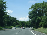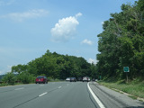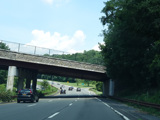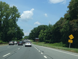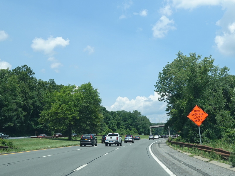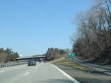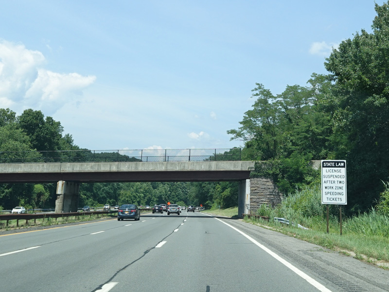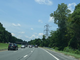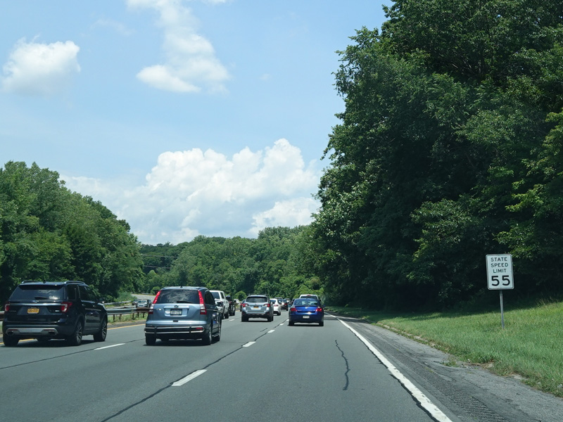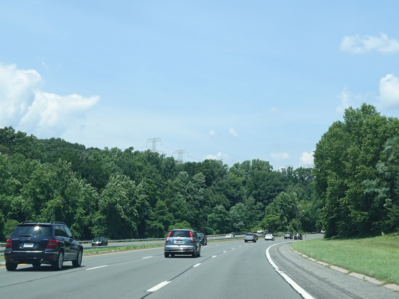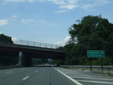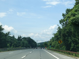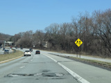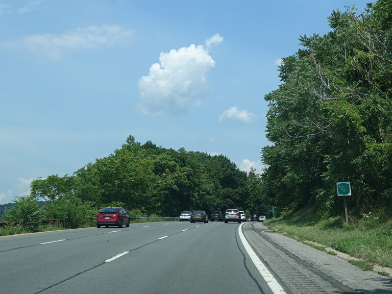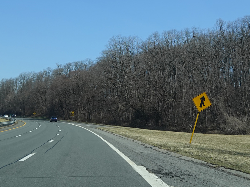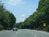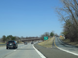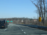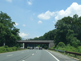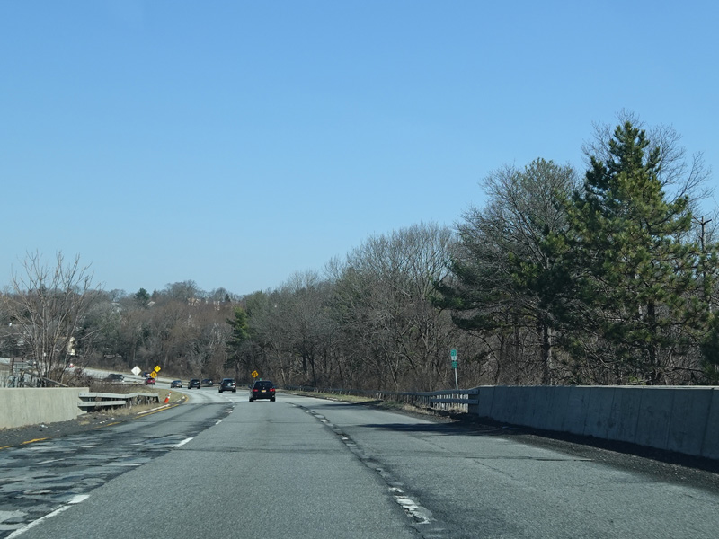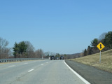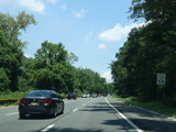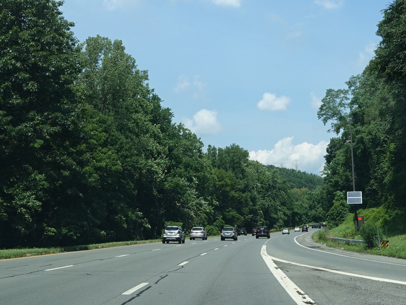 The northbound and southbound lanes split and run on opposite sides of the Grassy Sprain Reservoir.