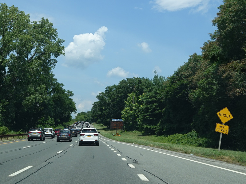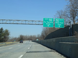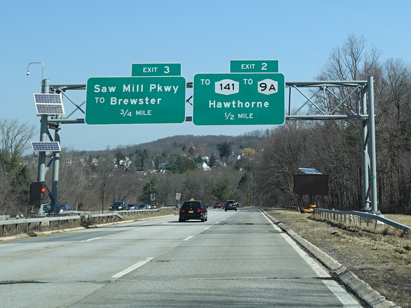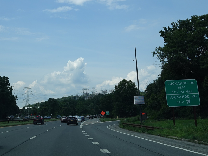 The Sprain Parkway here, merging with the Taconic Parkway. There is some advance signage for exits 2-3 just before the merge.