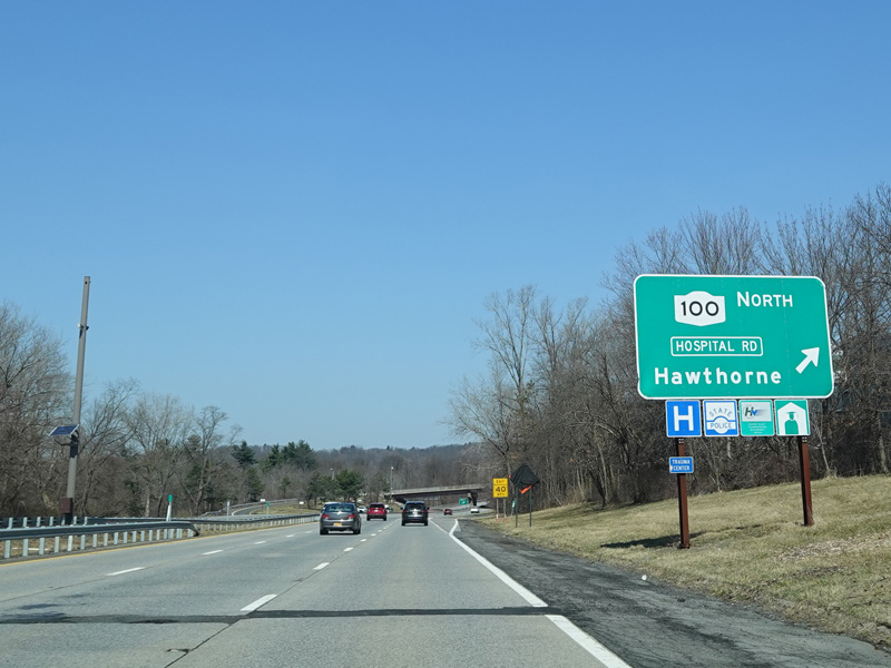 There is an exit for Bradhurst Avenue (NY 100) north and Hospital Road (CR 301).