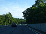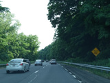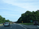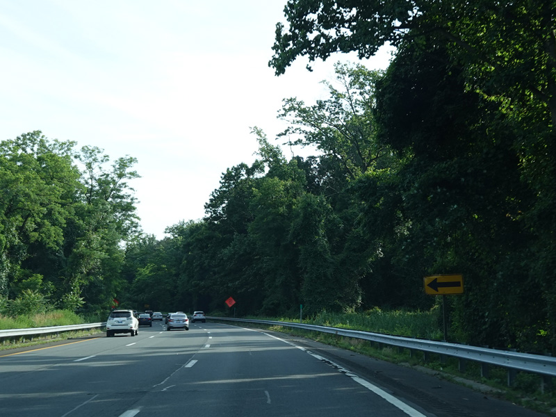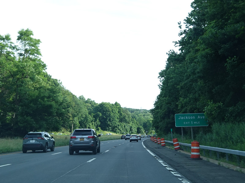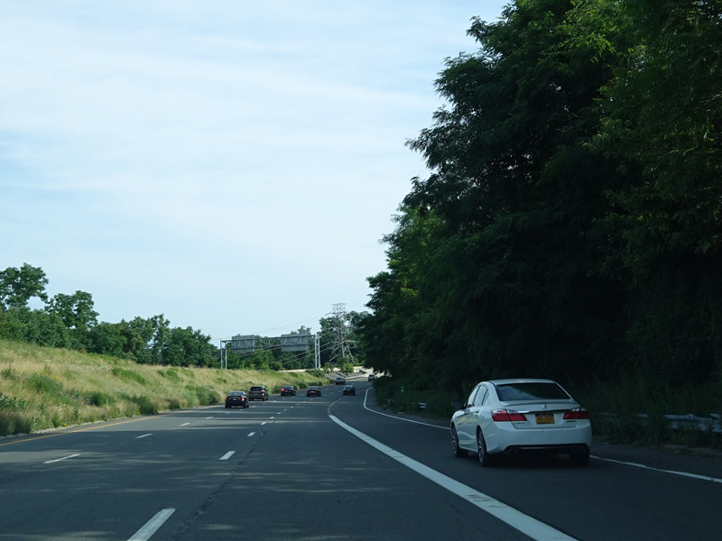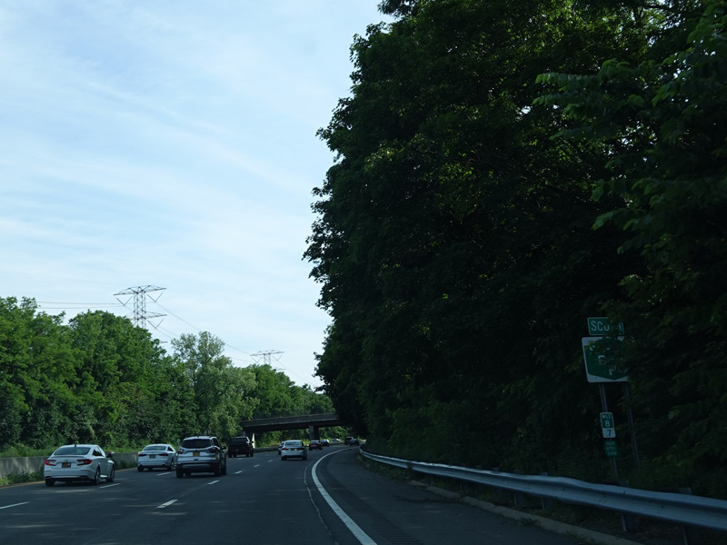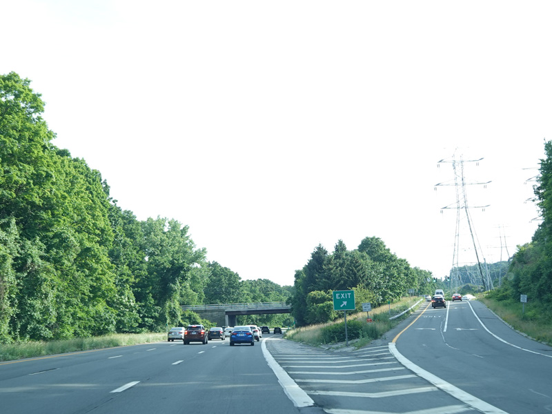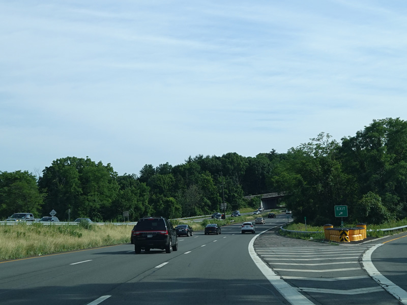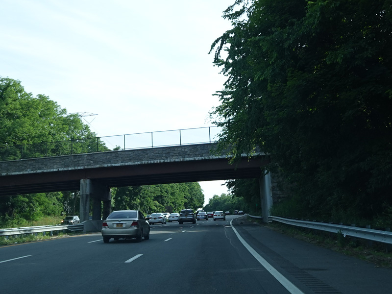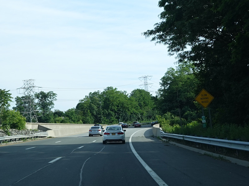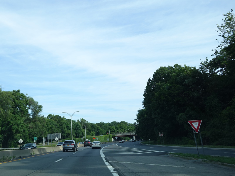 The northbound and southbound lanes split and runs on opposite sides of the Grassy Sprain Reservoir.