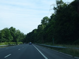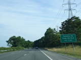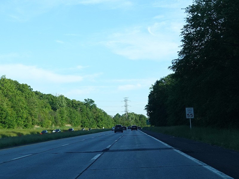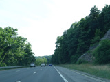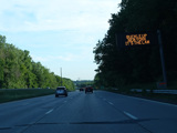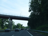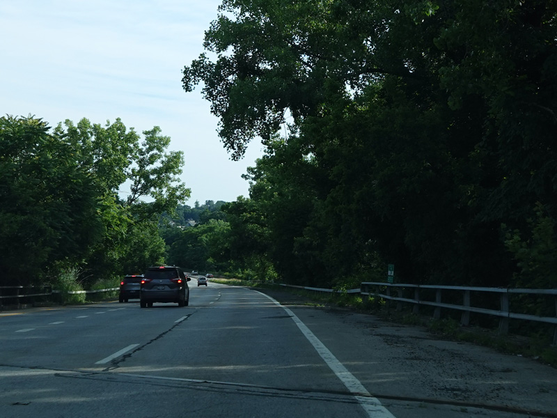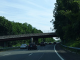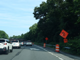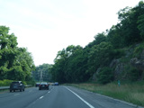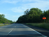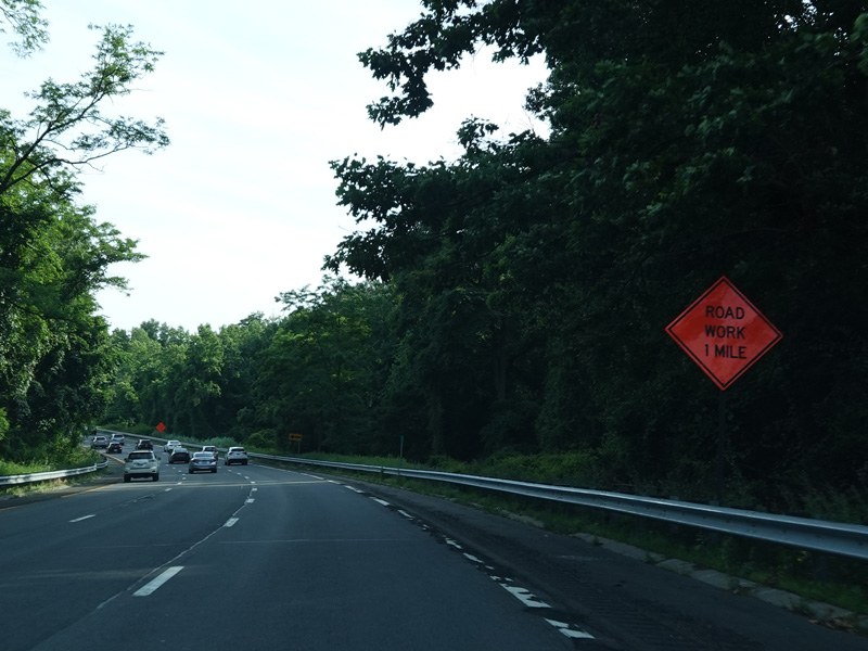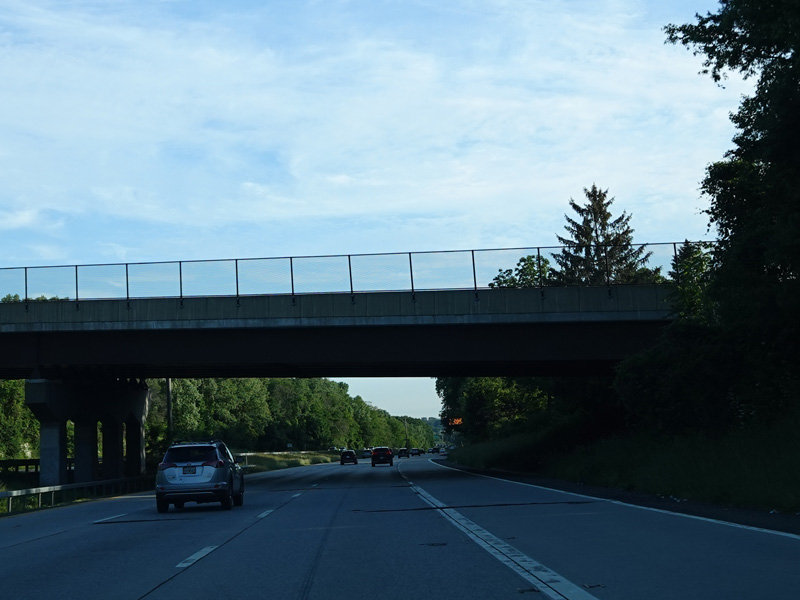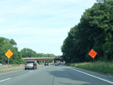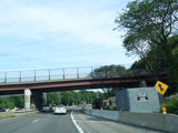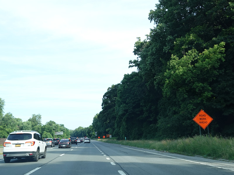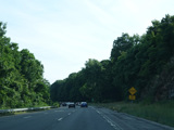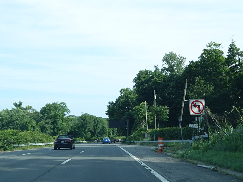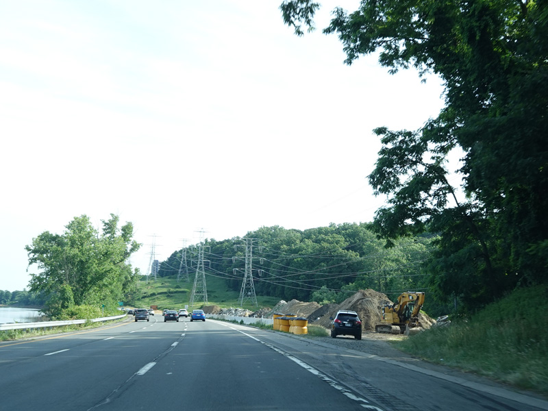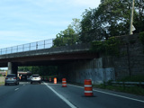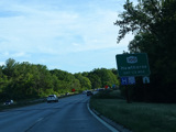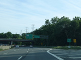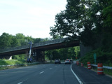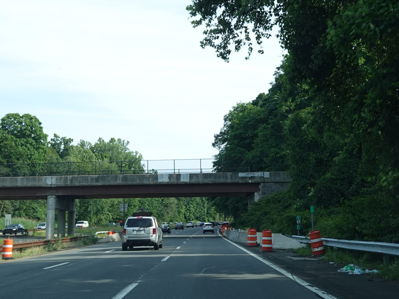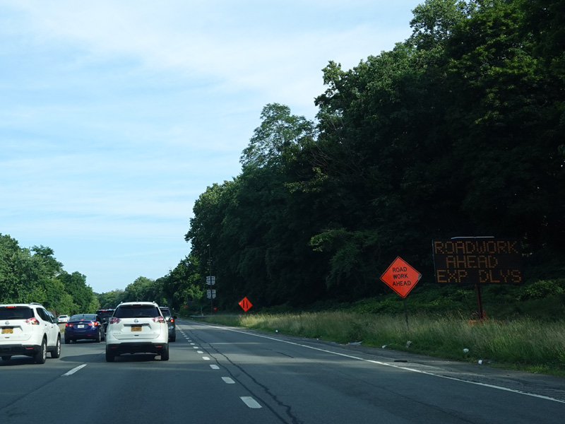 The northbound and southbound lanes split and runs on opposite sides of the Grassy Sprain Reservoir.