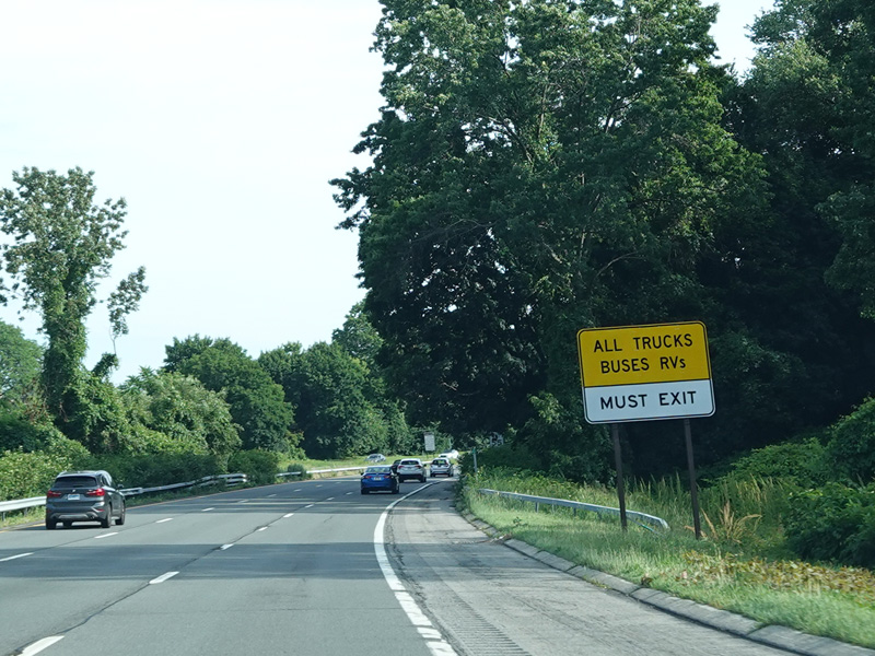 The Sprain Parkway narrows down to two lanes and ends as the Bronx Parkway merges in from the right.