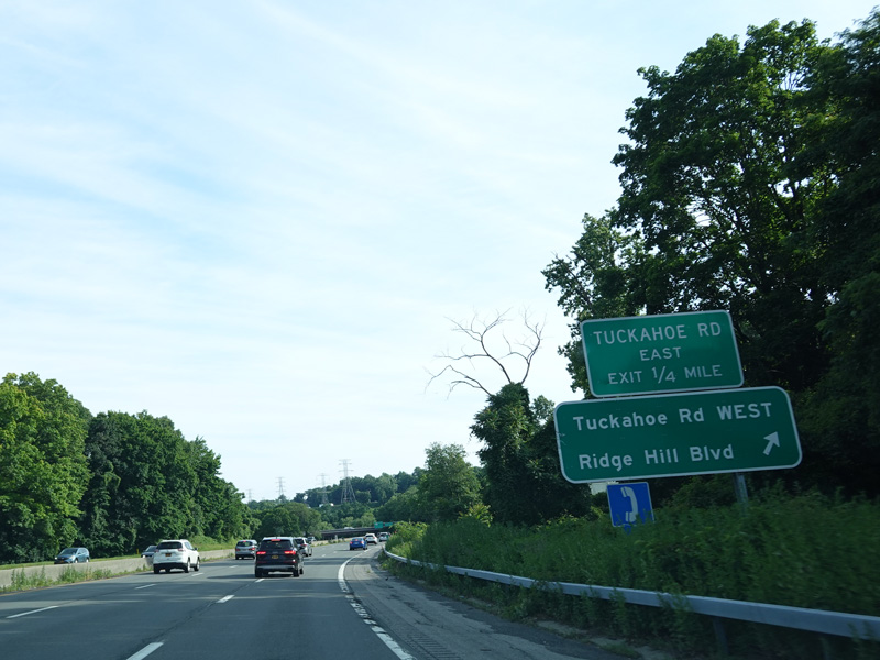 There is a pair of exits for Tuckahoe Road (CR 59) and Ridge Hill Boulevard.