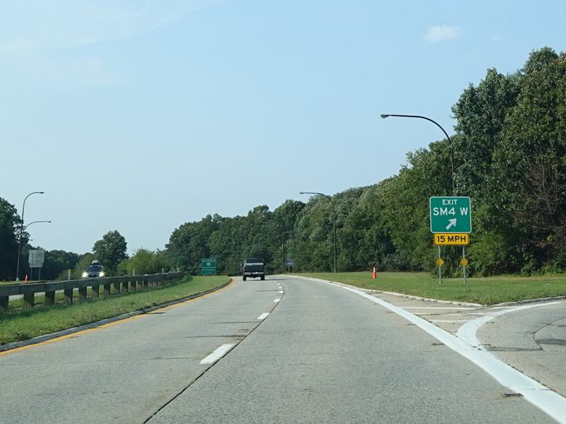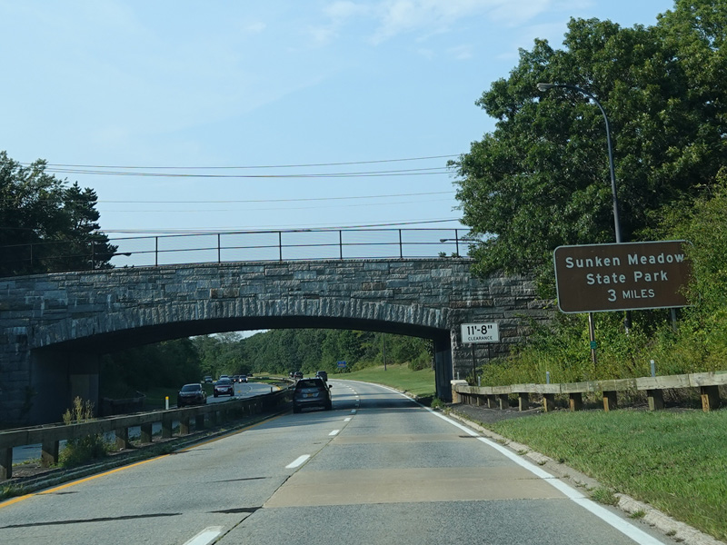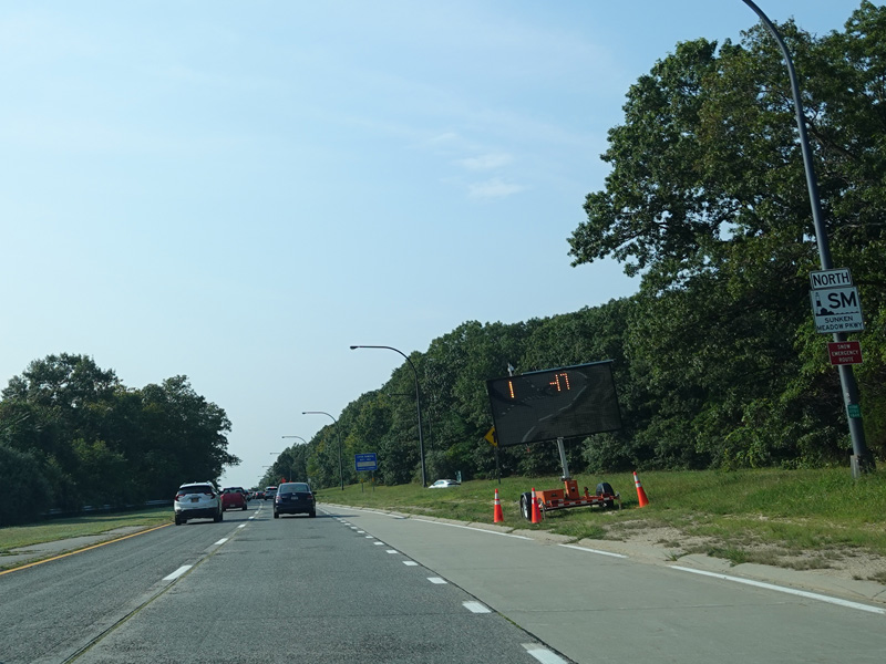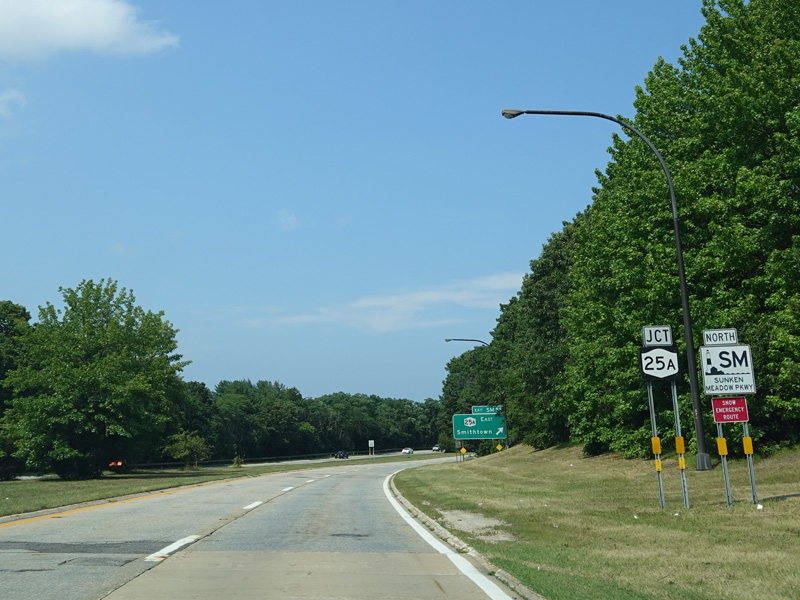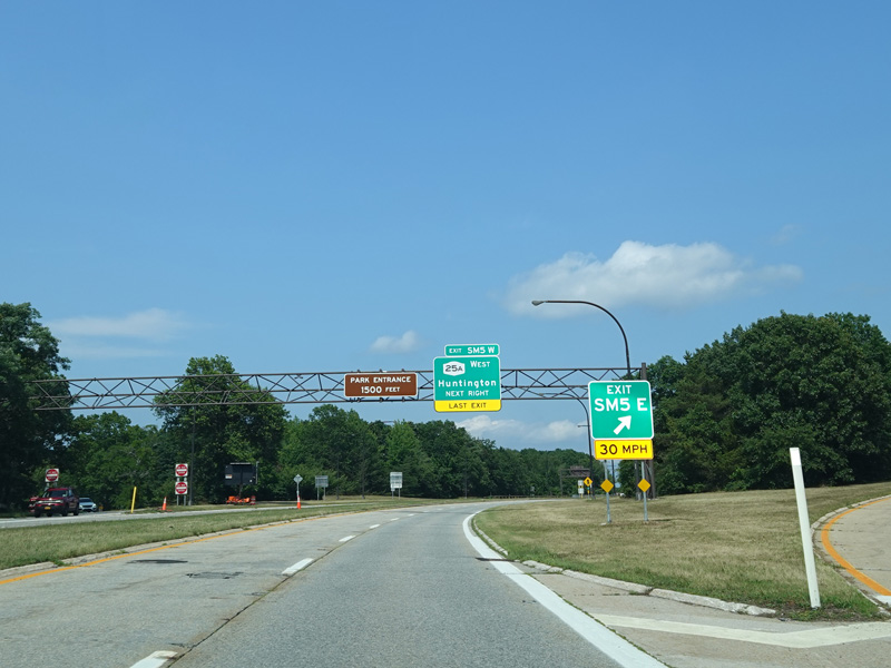 The Sagtikos Parkway turns into the Sunken Meadow Parkway at its northern terminus. Exits SM1E-W are for the Northern Parkway.