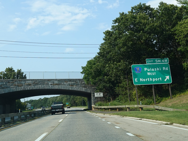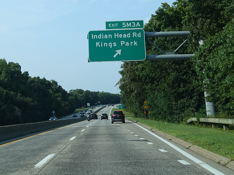 Exit SM2 is for Veterans Highway (NY 454). It also provides access to Smithtown Bypass (NY 347) and Harned Road.